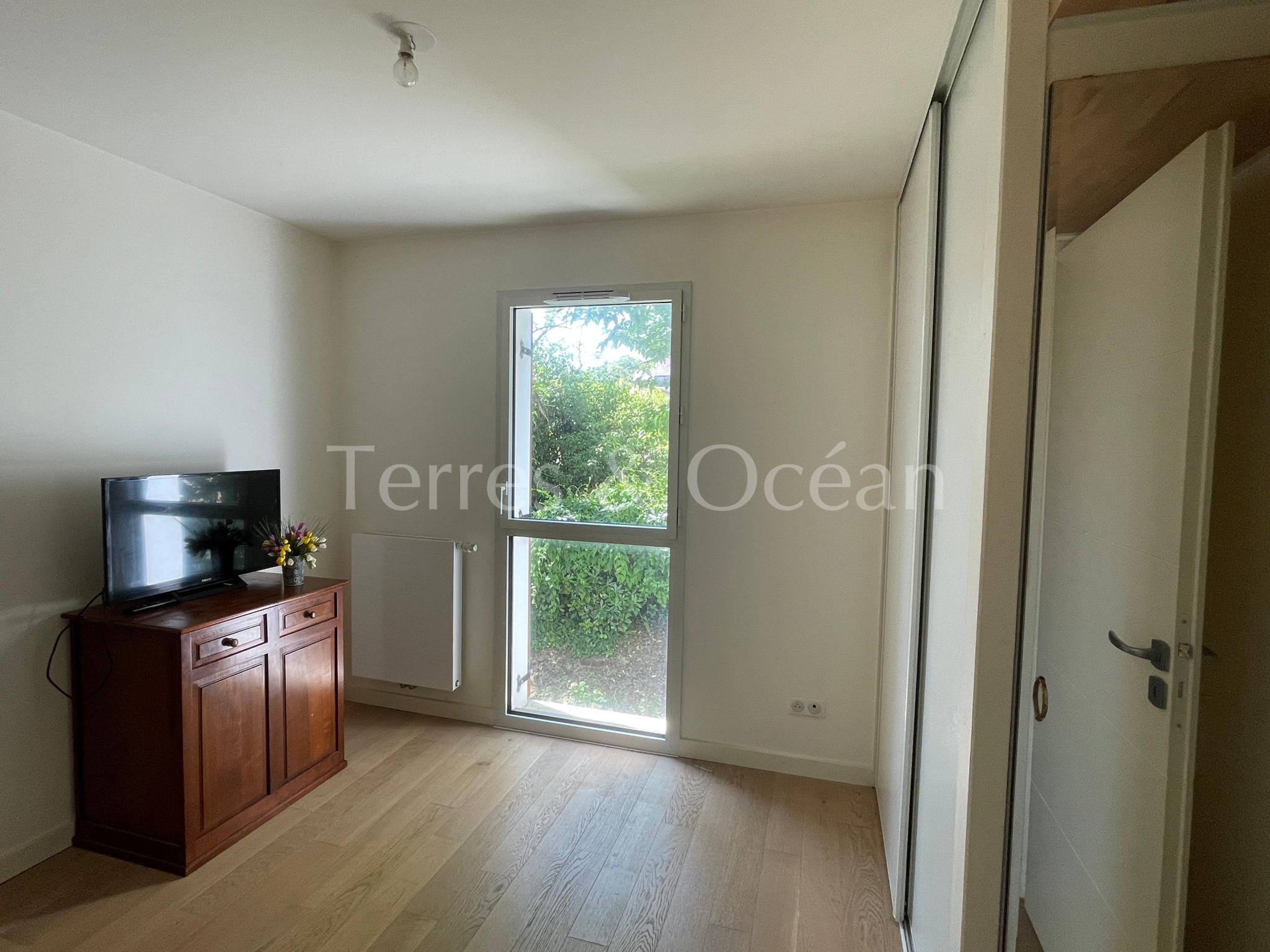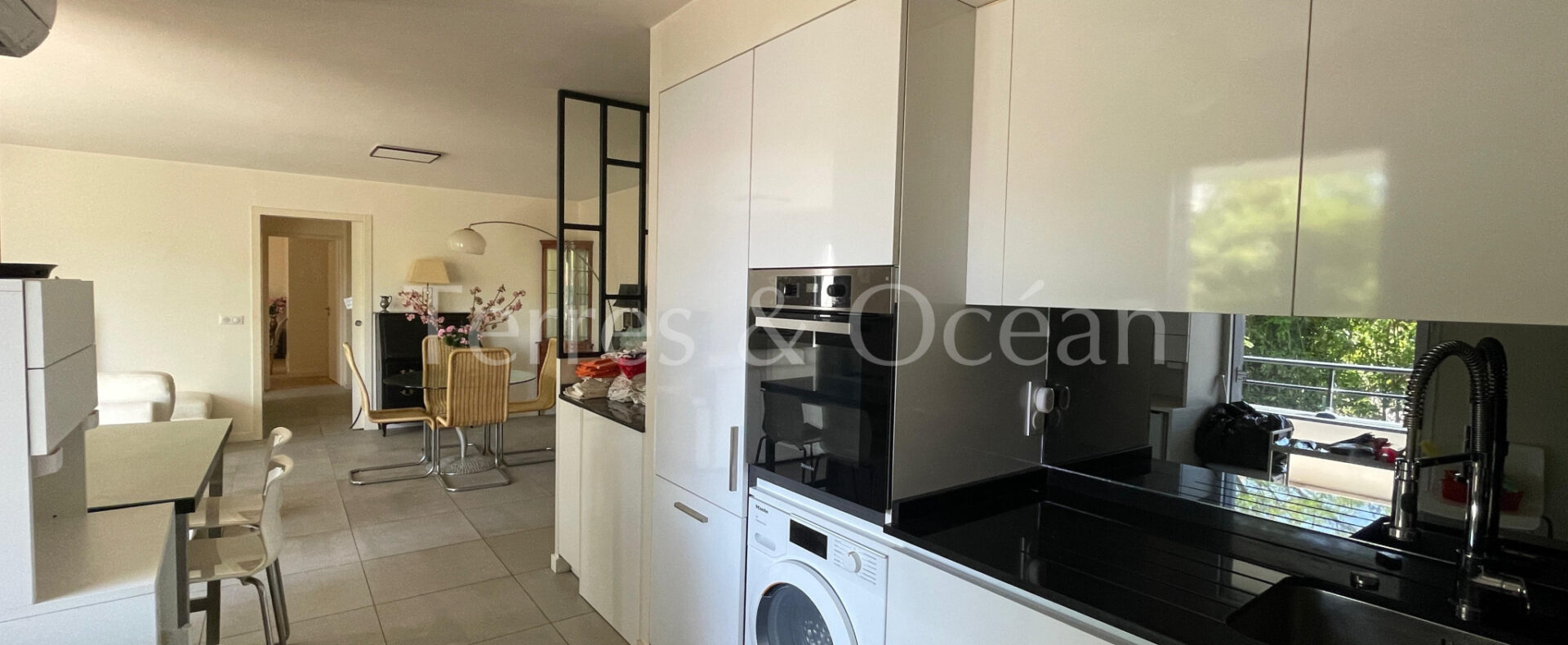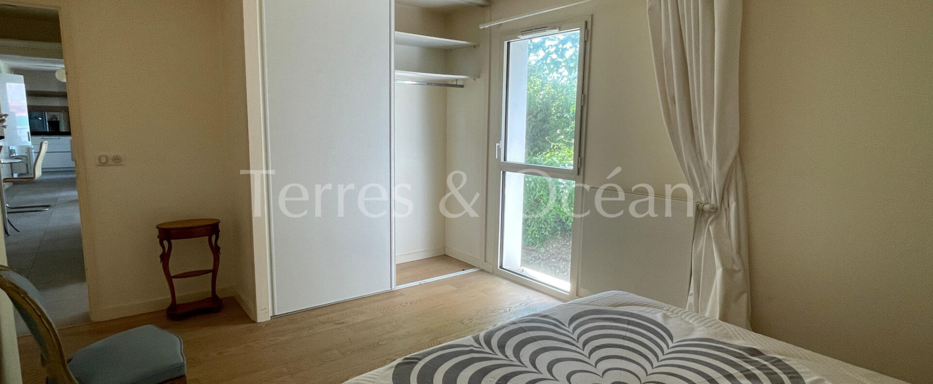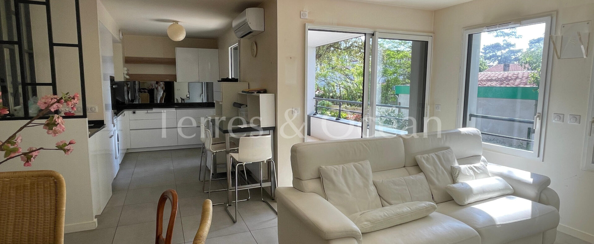 In the heart of Hossegor, just a few steps from the covered market and the market, this apartment offers an ideal living environment, whether for holidays or to live there all year round. Located on the first floor of a recent and high-end residence (secure and with elevator), it consists of an entrance leading to a large living room, very functional open kitchen, a sleeping area served by a corridor, including two bedrooms (with built-in wardrobe) and a bathroom and two toilets. A pleasant covered terrace facing west, accessible from the kitchen and the living room, allows you to fully enjoy the outdoors. It is possible to purchase a parking space in addition to the price (closed box located in the basement of the residence). Contact us today.