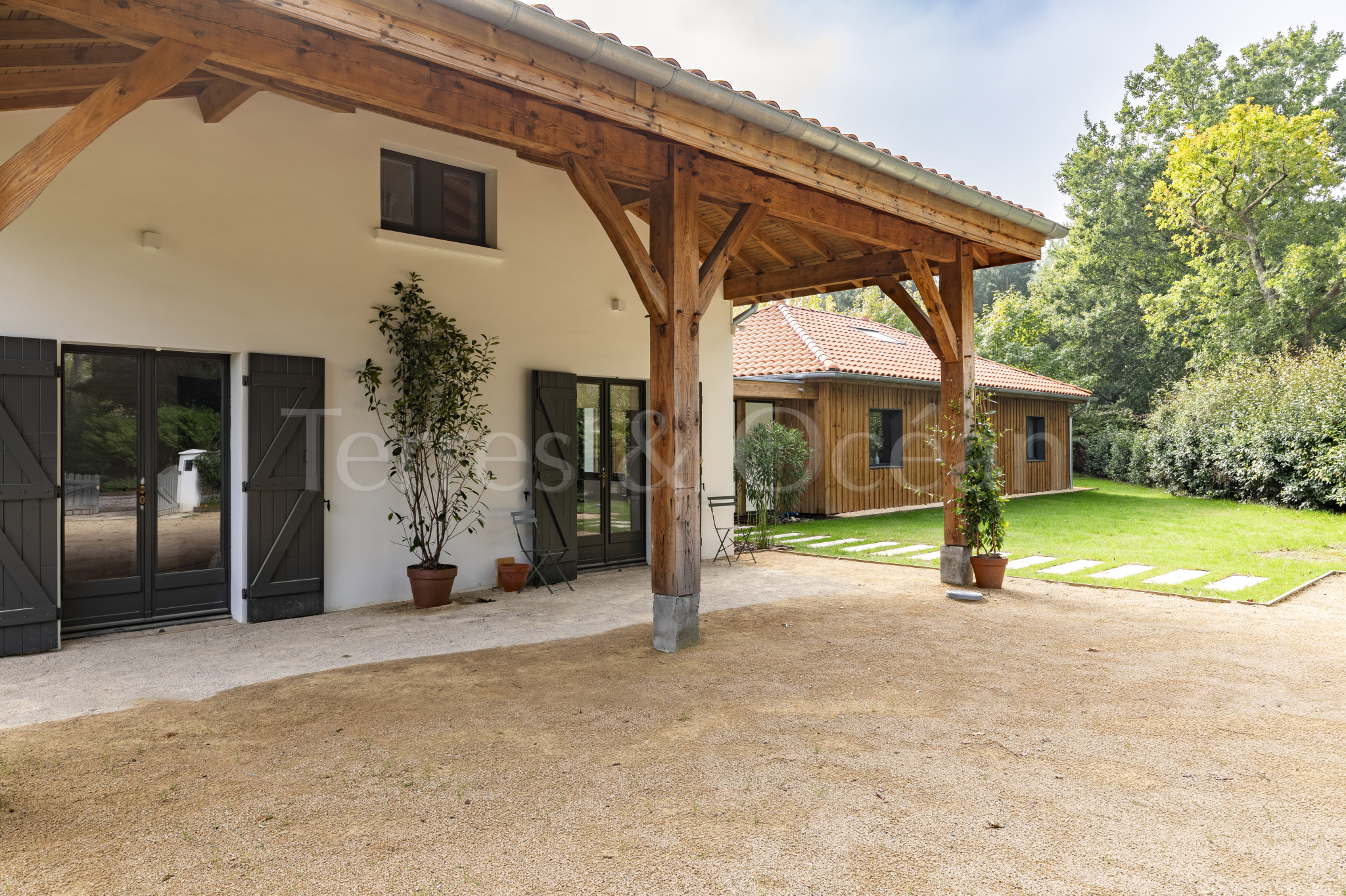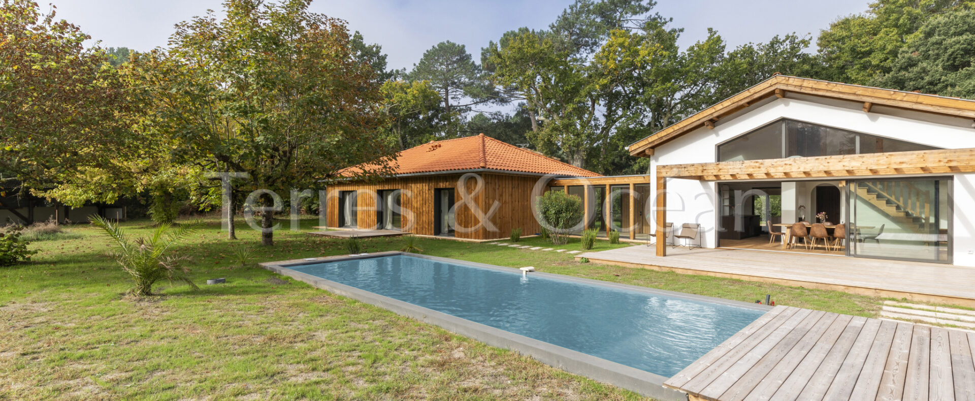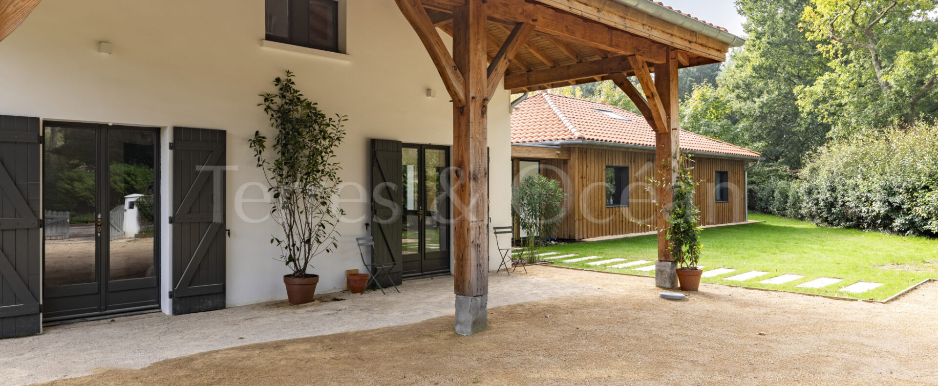 30 minutes from Hossegor and 3 km from the beaches, in a quiet and sought-after area, magnificent contemporary villa completely renovated of approximately 170m2. A mixture of the charm of the authentic and the modernity sought after today. The villa, sold fully equipped and furnished, is composed of a superb glass entrance, a large living room with open kitchen, a lounge, an office space, three bedrooms each with its own bathroom, a master suite and three toilets. The large terrace overlooks a beautiful heated swimming pool. Landscaped garden with automatic watering of approximately 1500m2. Work under warranty and building damage insurance. Virtual tour on request. Information on the risks to which this property is exposed is available on the Géorisques website: www.georisques.gouv.fr Offered for sale by the TERRES & OCEAN immobilier agency – Mandate 1528 – Sales agent Alexandra Baudoin Desprez RSAC 853 744 217 Dax Tel 07.81.75.97.44