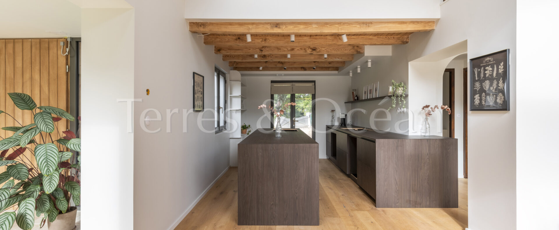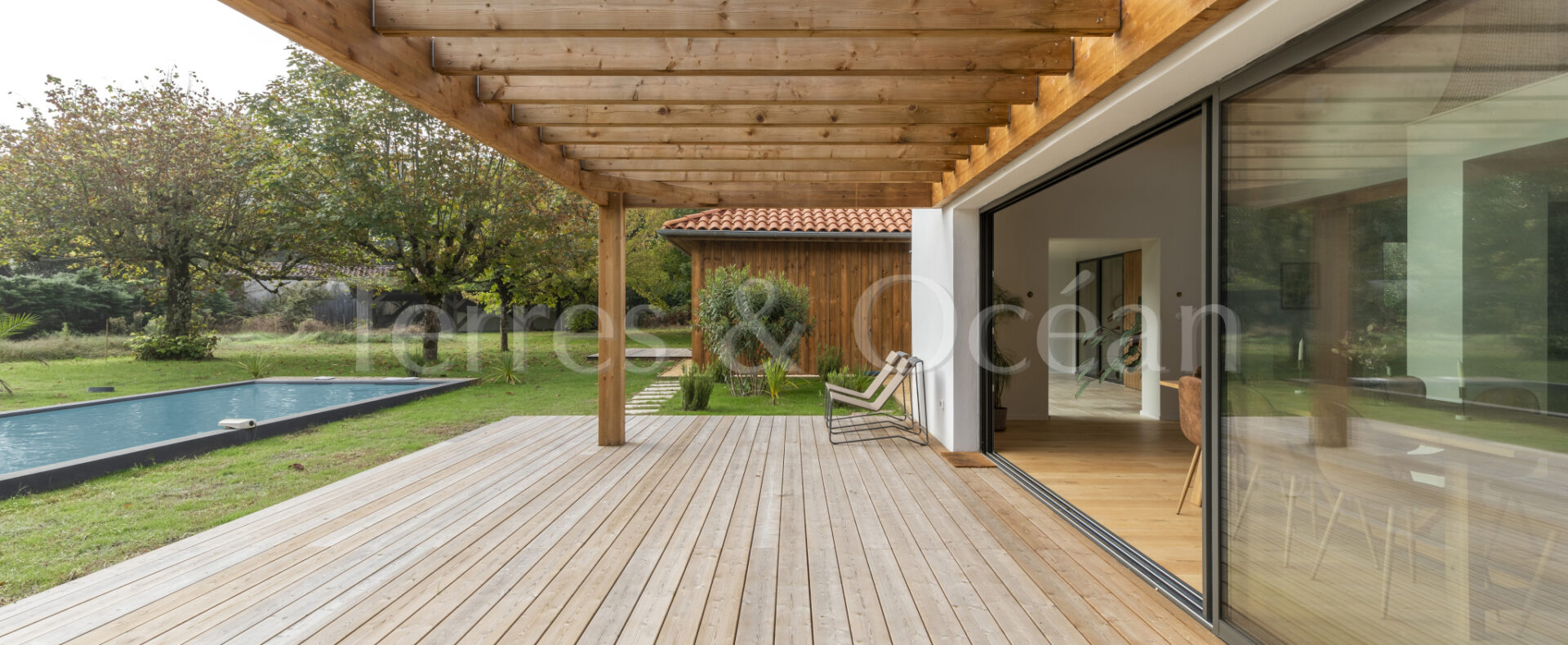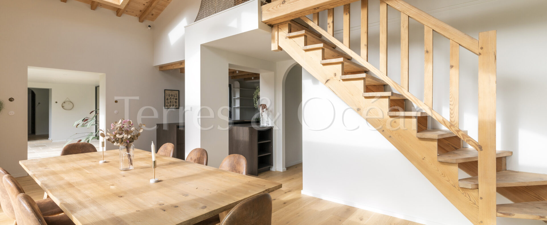 30 minutes from Hossegor and 3 km from the beaches, in a quiet and sought-after area, magnificent contemporary villa completely renovated of approximately 170m2. A mixture of the charm of the authentic and the modernity sought after today. The villa, sold fully equipped and furnished, is composed of a superb glass entrance, a large living room with open kitchen, a lounge, an office space, three bedrooms each with its own bathroom, a master suite and three toilets. The large terrace overlooks a beautiful heated swimming pool. Landscaped garden with automatic watering of approximately 1500m2. Work under warranty and building damage insurance. Virtual tour on request. Information on the risks to which this property is exposed is available on the Géorisques website: www.georisques.gouv.fr Offered for sale by the TERRES & OCEAN immobilier agency – Mandate 1528 – Sales agent Alexandra Baudoin Desprez RSAC 853 744 217 Dax Tel 07.81.75.97.44