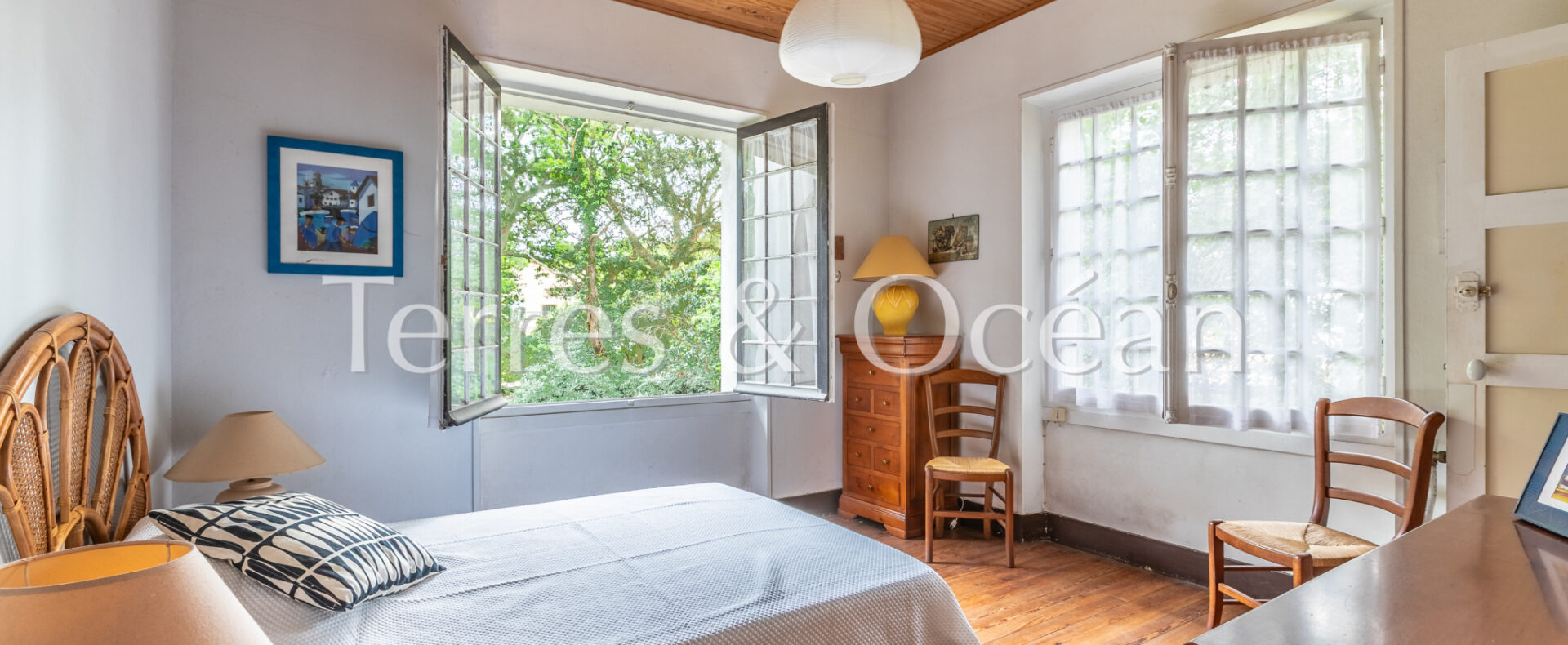 A haven of peace, just steps from the city center, the lake, and the ocean. Nestled in the heart of a wooded and intimate park, composed of century-old oaks and pines, this sumptuous Basque-Landes house, built in 1926 by architect Robert Maurice, embodies the elegance and authenticity of a fine art of living.