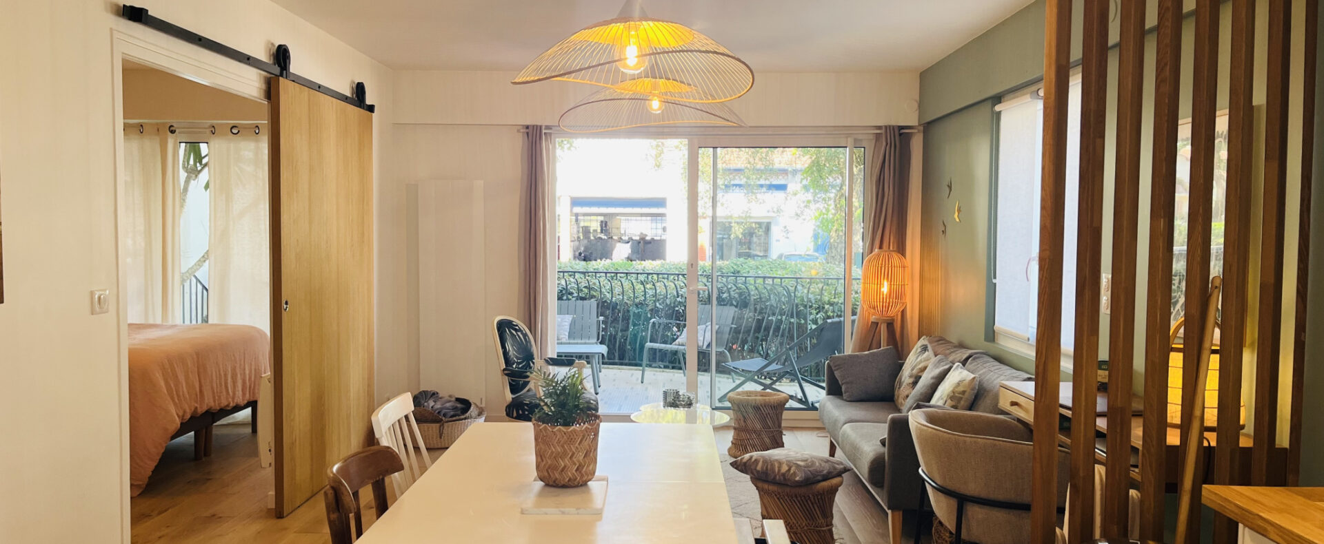 Beautiful, tastefully renovated 2-bedroom apartment with terrace and garden of approximately 24m2 located on the ground floor of an iconic residence in downtown Hossegor, 5 minutes from the beaches. Large, bright living room with open kitchen, two spacious bedrooms, a shower room and separate toilet. Cellar and parking space in the basement. Comfortable and modern, ideal for year-round living, or as a pied-à-terre, good rental yield. Co-ownership, no procedure in progress. Technical information: information on the risks to which this property is exposed is available on the Géorisques website: www.georisques.gouv.fr. DPE in progress. Offered for sale by the TERRES & OCEAN immobilier agency – mandate ref 1669 – Sales agent Mrs. Mathilde VINTROU RSAC 918907767 tel: 07.81.86.40.19