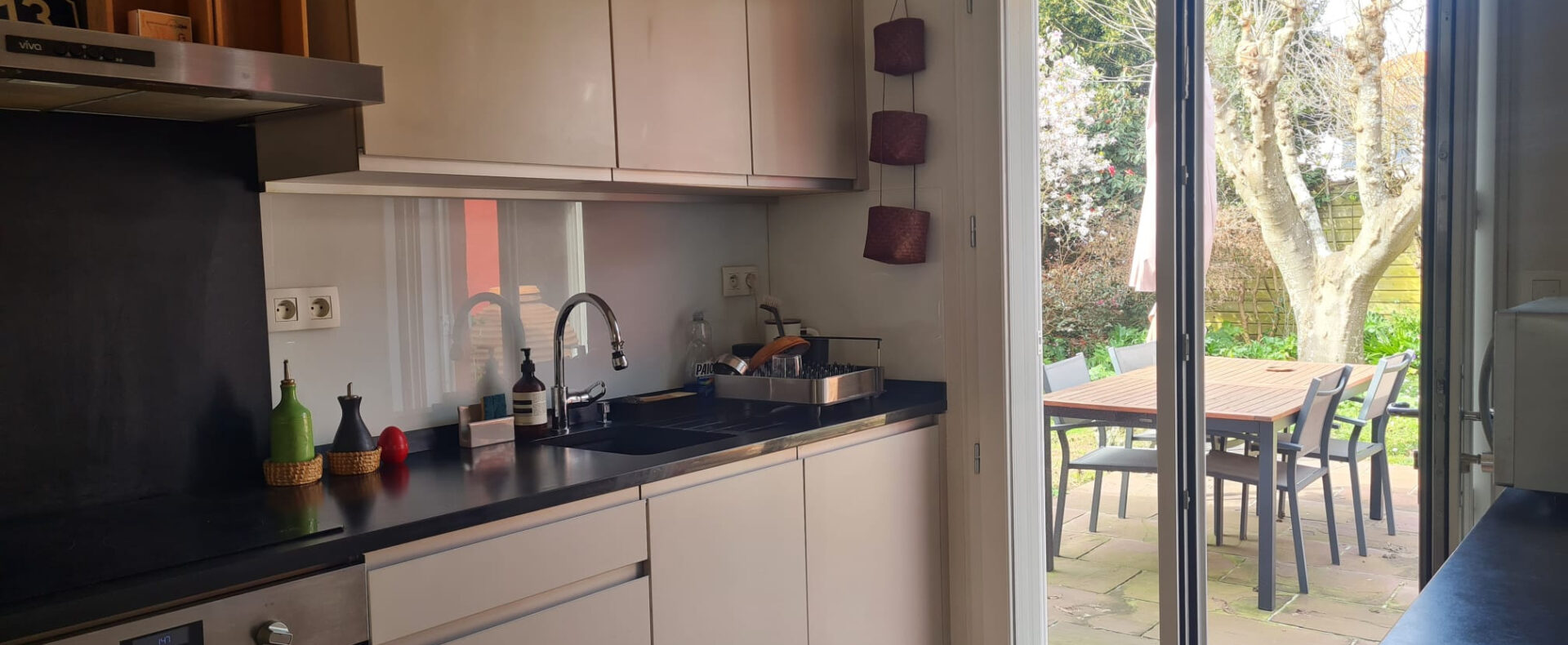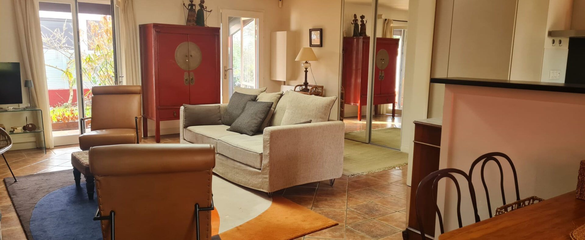 In a quiet street in Anglet, close to shops and Biarritz, this charming single-storey house has recently undergone a high-quality renovation.