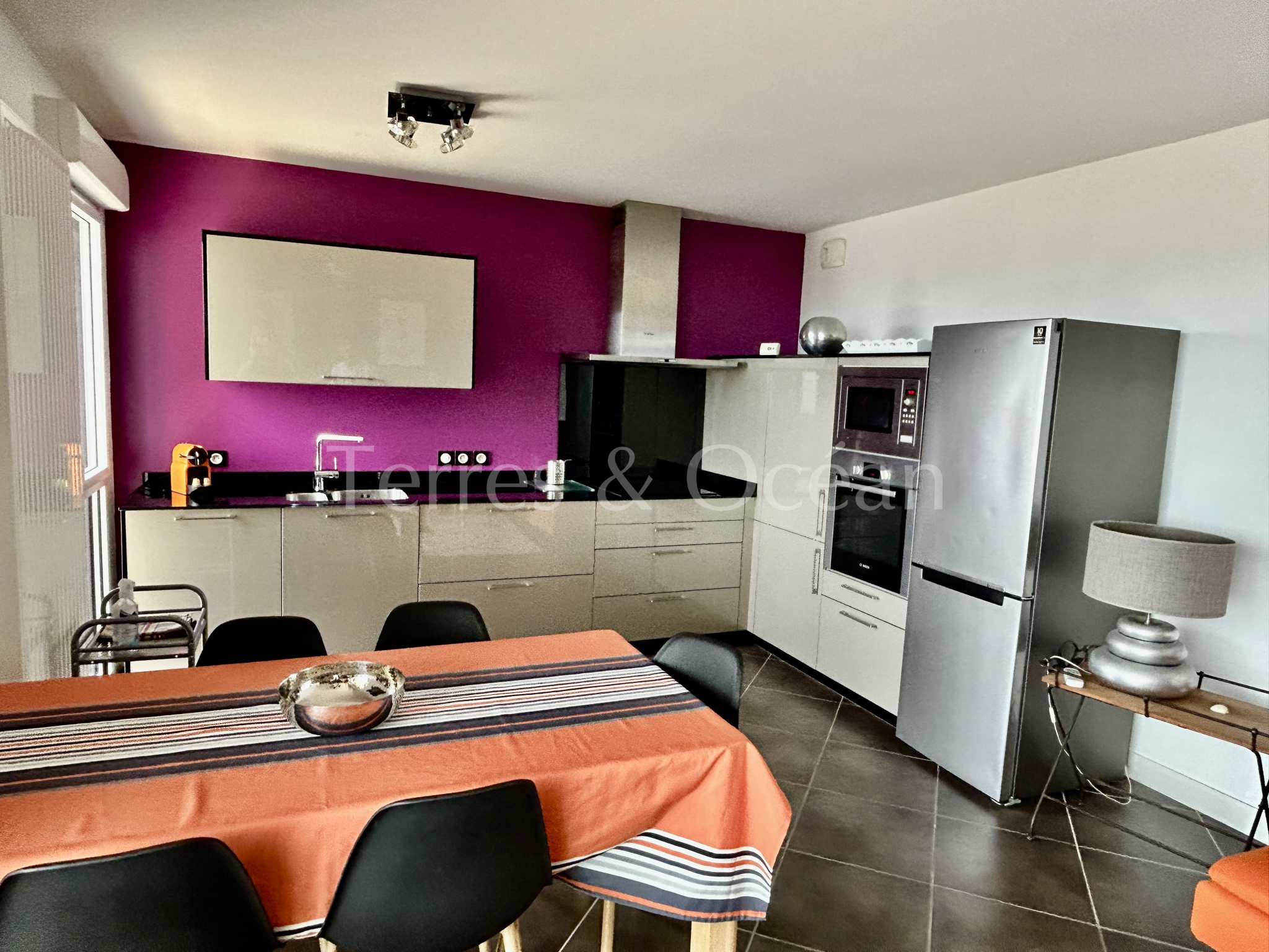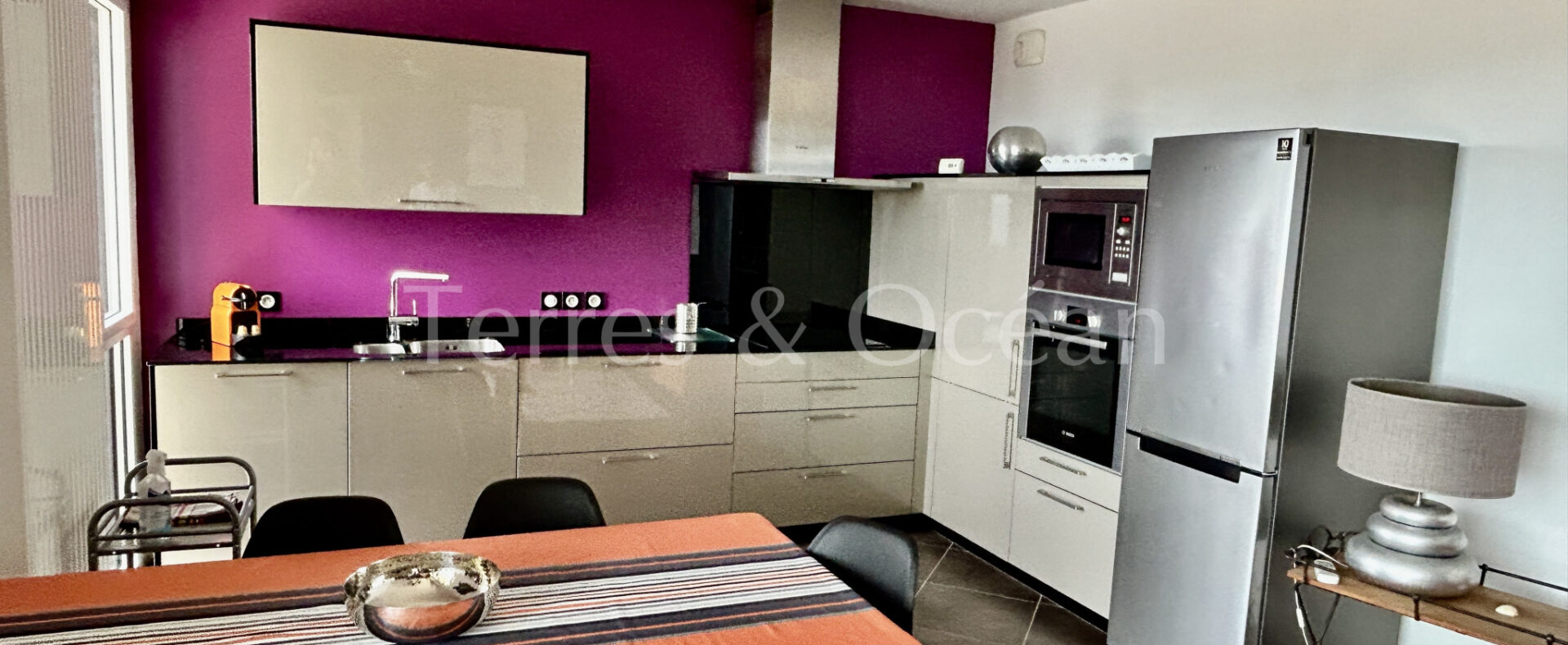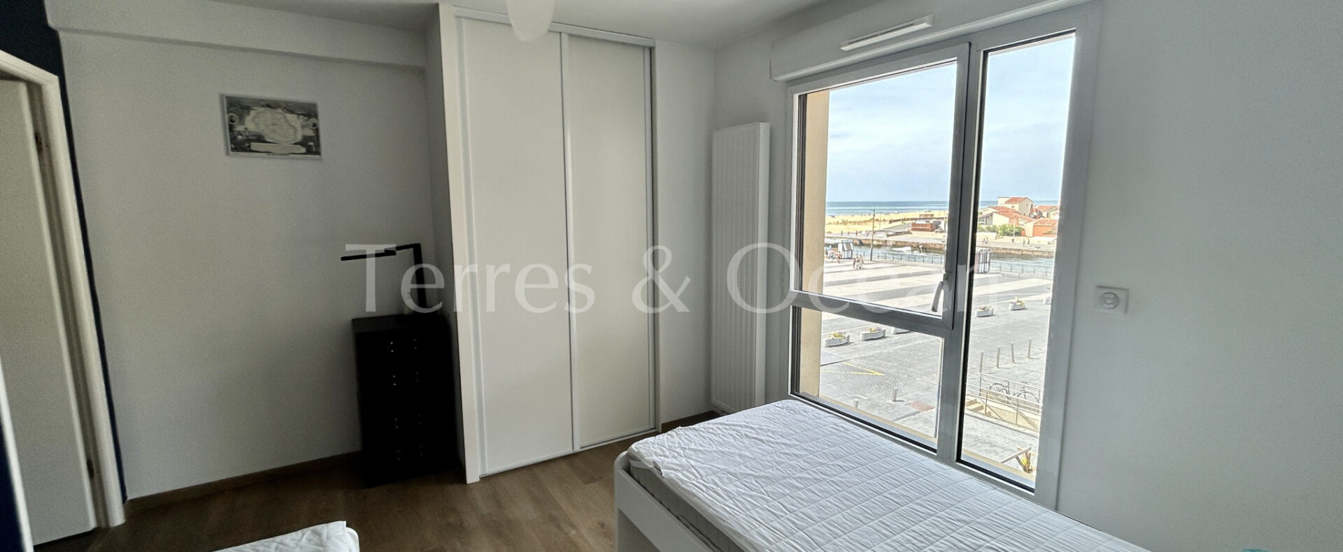 Capbreton, situé dans une résidence de haut standing avec ascenceur, magnifique appartement de 67 m2 de type 3, au 2ème étage, bénéficiant d’une vue sur l’océan. Il se compose d’une vaste pièce de réception avec cuisine américaine, une grande terrasse côté mer d’environ 16 m2, deux chambres avec placards, une salle d’eau et d’un wc. Parking en sous-sol et espace de rangement commun pour vélos. Parfaitement adapté aux modes de vie à l’année comme en saisonnier. Visite virtuelle sur demande. Copropriété de 140 lots dont 67 appartements. Charges annuelles de copropriété : 1200 € par an. Les informations sur les risques auxquels ce bien est exposé sont disponibles sur le site Géorisques : www.georisques.gouv.fr Proposé à la vente par l’agence TERRES & OCEAN immobilier – Mandat 1500 – Agent commercial Alexandra Baudoin Desprez RSAC 853744217 Dax. Tél : 07.81.75.97.44