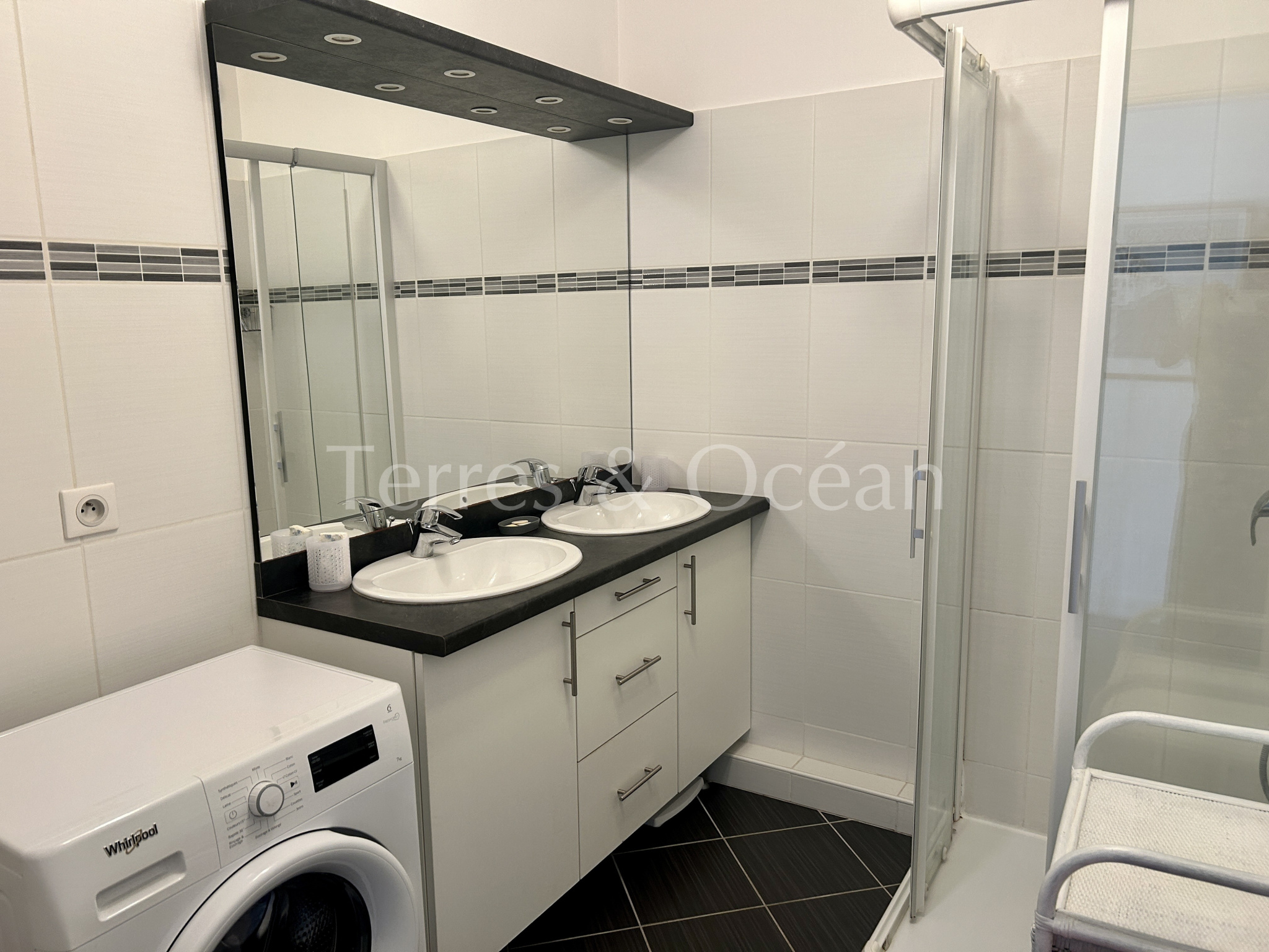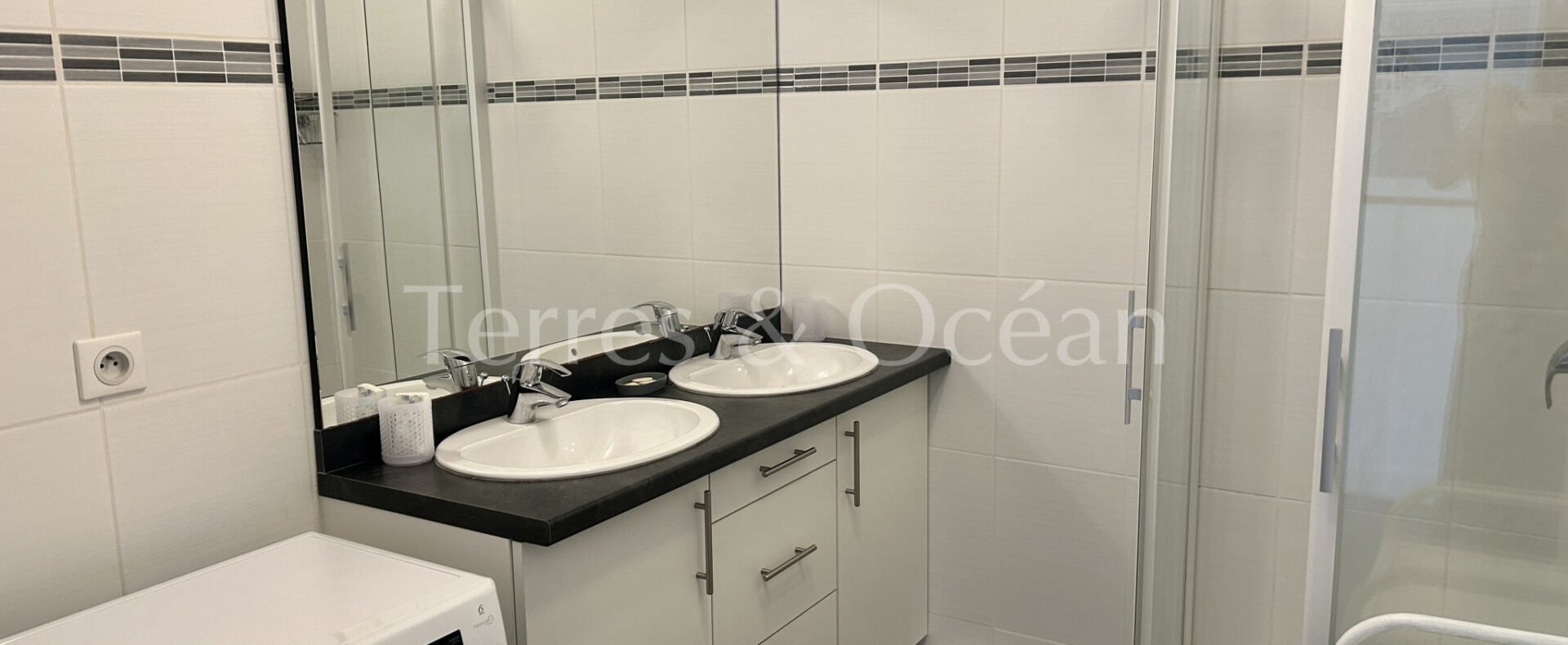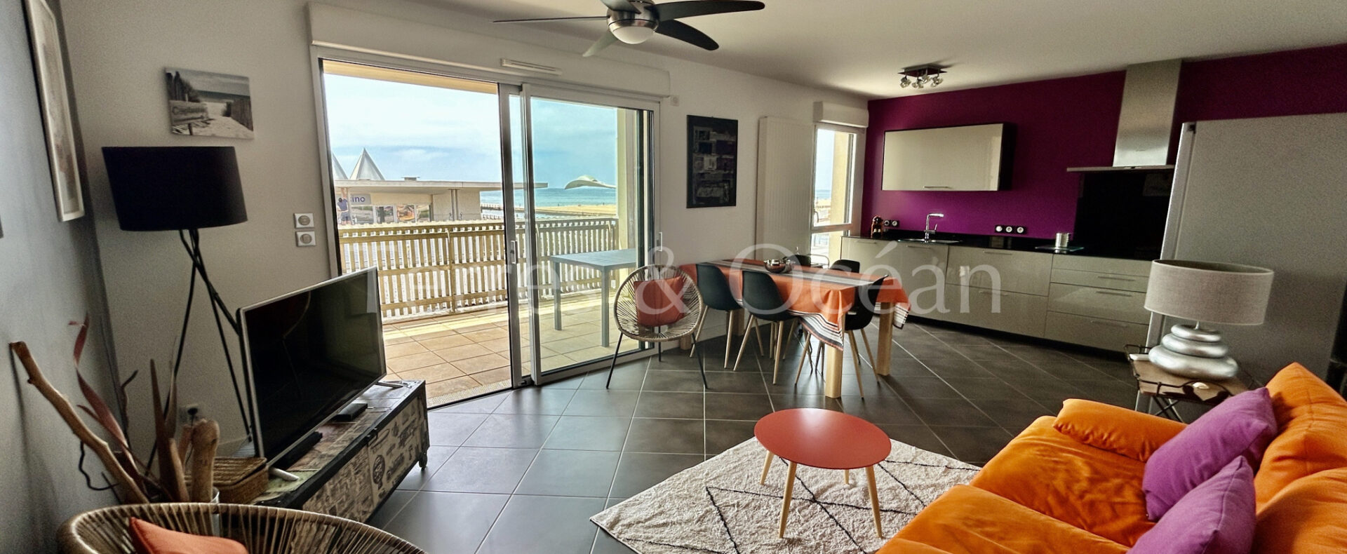 Capbreton, situé dans une résidence de haut standing avec ascenceur, magnifique appartement de 67 m2 de type 3, au 2ème étage, bénéficiant d’une vue sur l’océan. Il se compose d’une vaste pièce de réception avec cuisine américaine, une grande terrasse côté mer d’environ 16 m2, deux chambres avec placards, une salle d’eau et d’un wc. Parking en sous-sol et espace de rangement commun pour vélos. Parfaitement adapté aux modes de vie à l’année comme en saisonnier. Visite virtuelle sur demande. Copropriété de 140 lots dont 67 appartements. Charges annuelles de copropriété : 1200 € par an. Les informations sur les risques auxquels ce bien est exposé sont disponibles sur le site Géorisques : www.georisques.gouv.fr Proposé à la vente par l’agence TERRES & OCEAN immobilier – Mandat 1500 – Agent commercial Alexandra Baudoin Desprez RSAC 853744217 Dax. Tél : 07.81.75.97.44