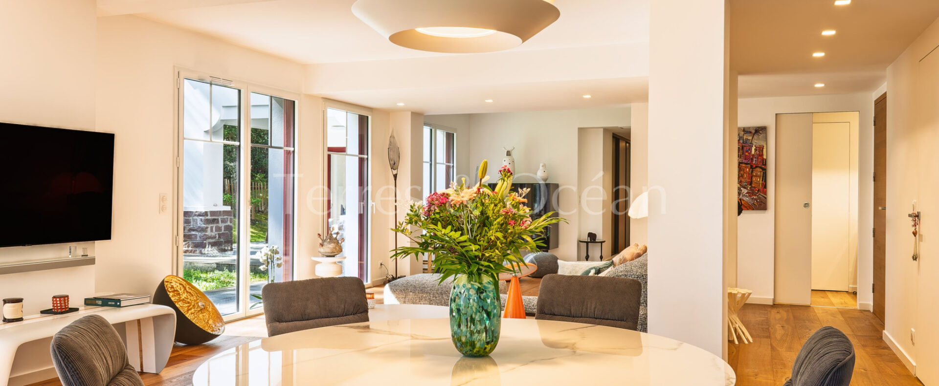 Au cœur d’un écrin de verdure cet appartement haut de gamme de plus de 180 m2 déploie ses volumes généreux et son élégance contemporaine face au prestigieux golf d’Hossegor