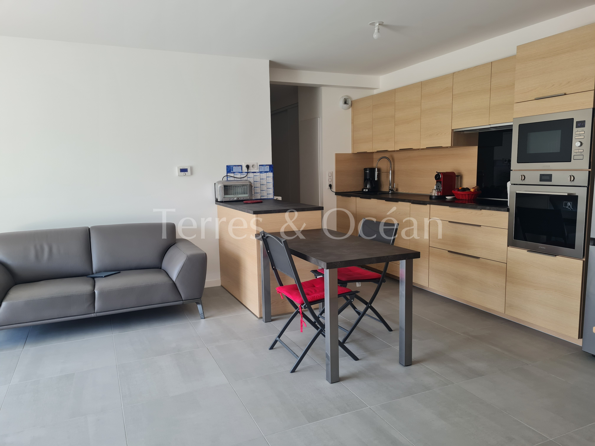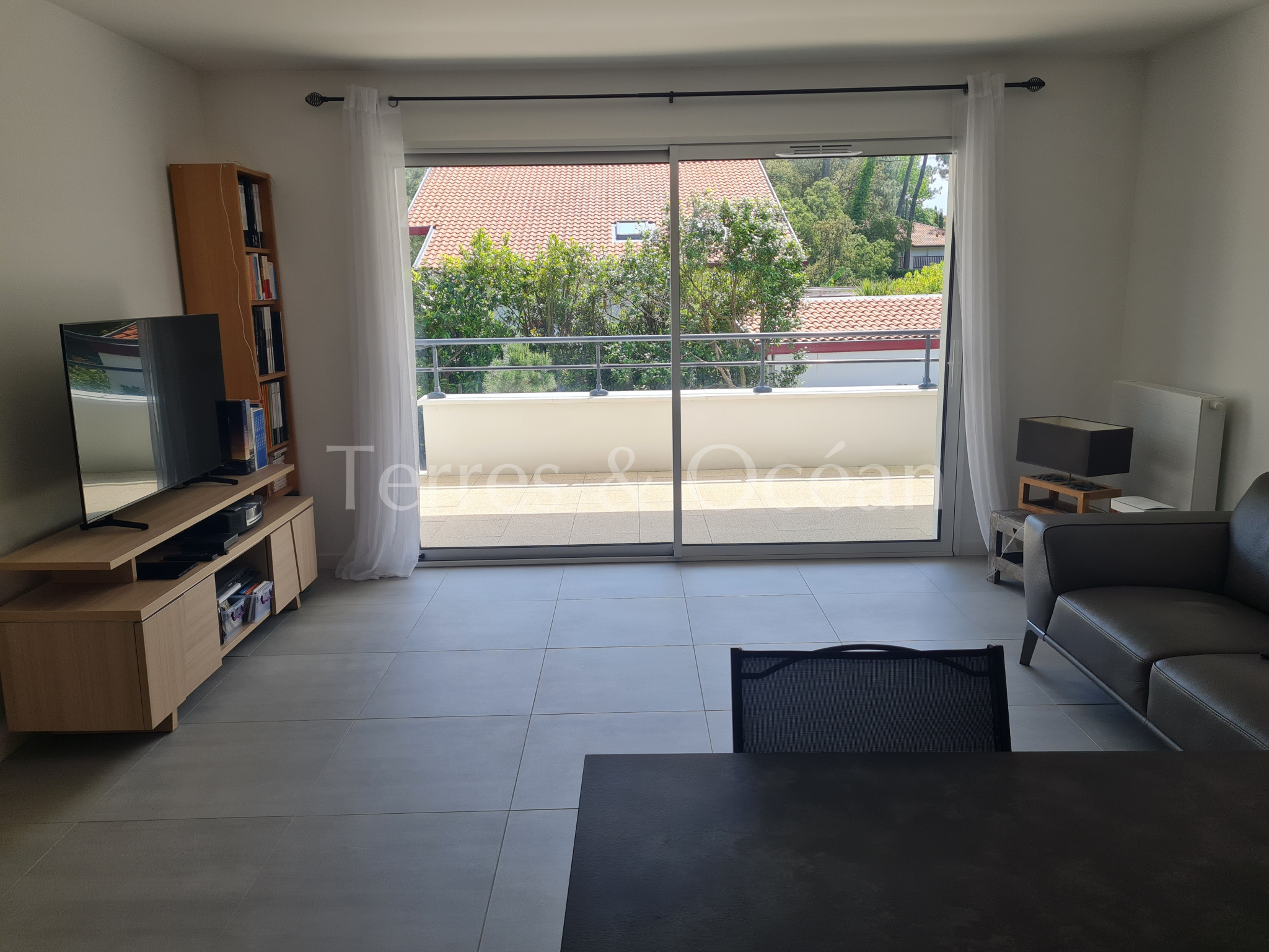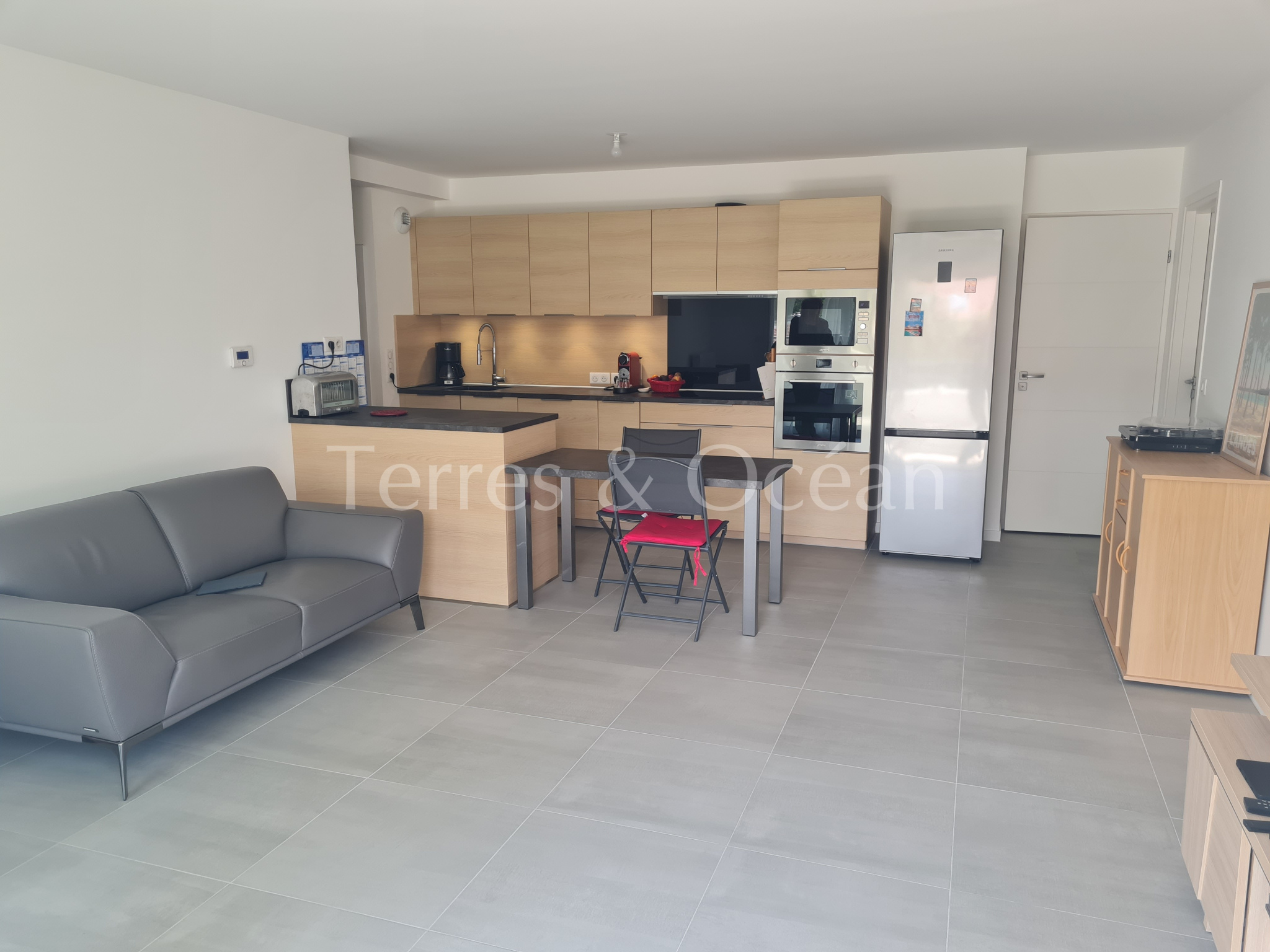 Dans une résidence récente proche des commerces et du golf, ce bel appartement bénéficie d’une vue dégagée et d’une bonne exposition. En premier étage avec ascenseur, il se compose d’une entrée, séjour avec cuisine ouvert sur une belle et large terrasse couverte, deux chambres avec rangements, salle d’eau. En annexe, l’appartement dispose d’un box spacieux en sous-sol. Cet appartement au calme sera parfait pour une vie à l’année ou un pied à terre permettant un mode de vie tout à pied. Renseignements techniques : Les informations sur les risques auxquels ce bien est exposé sont disponibles sur le site Géorisques : www.georisques.gouv.fr. Copropriété de 56 lots, pas de procédure en cours.