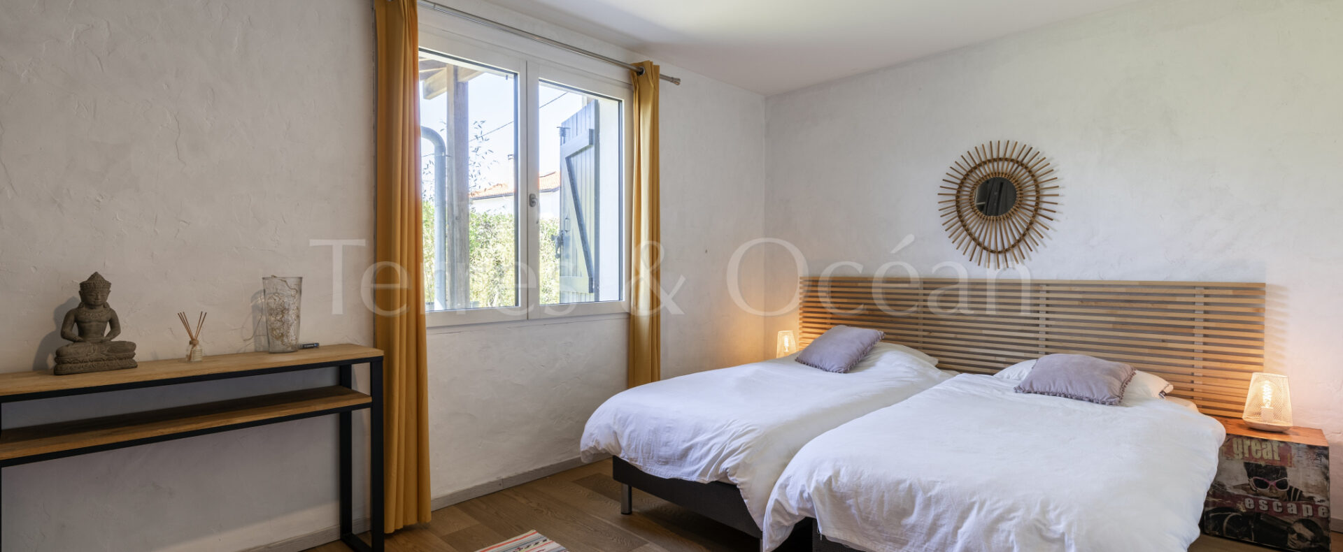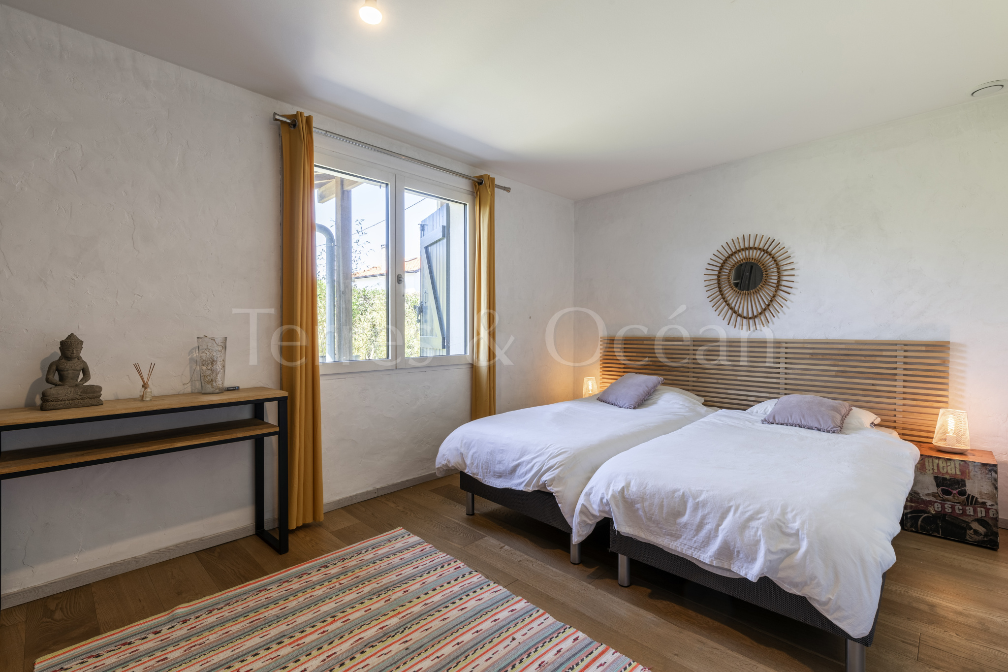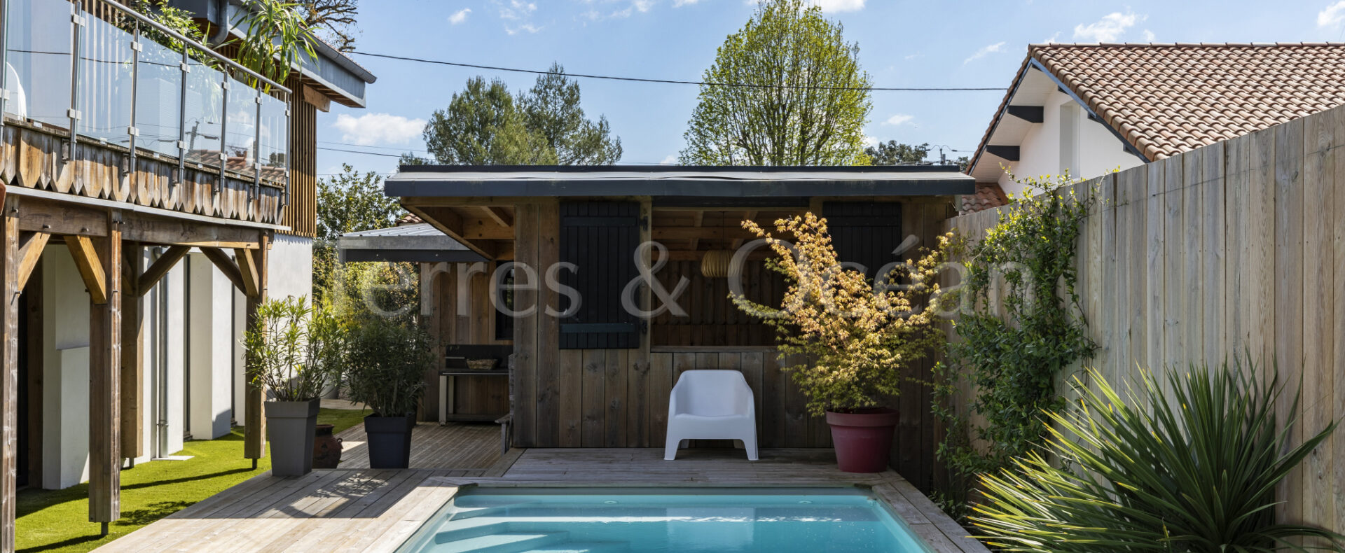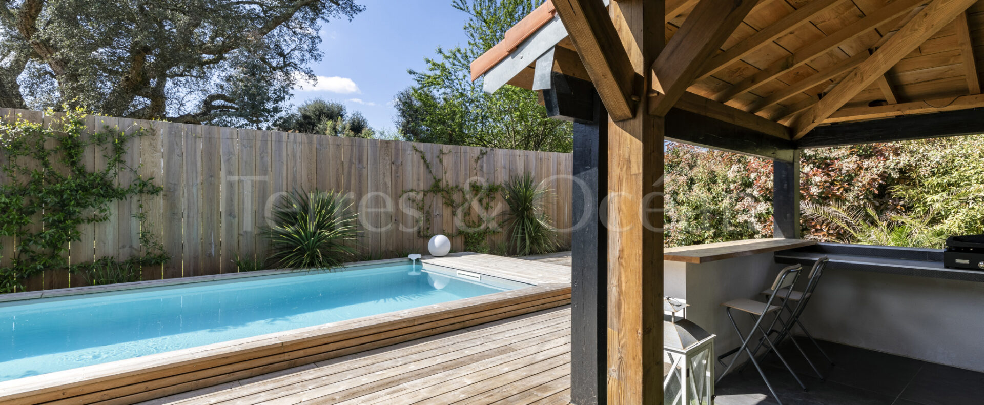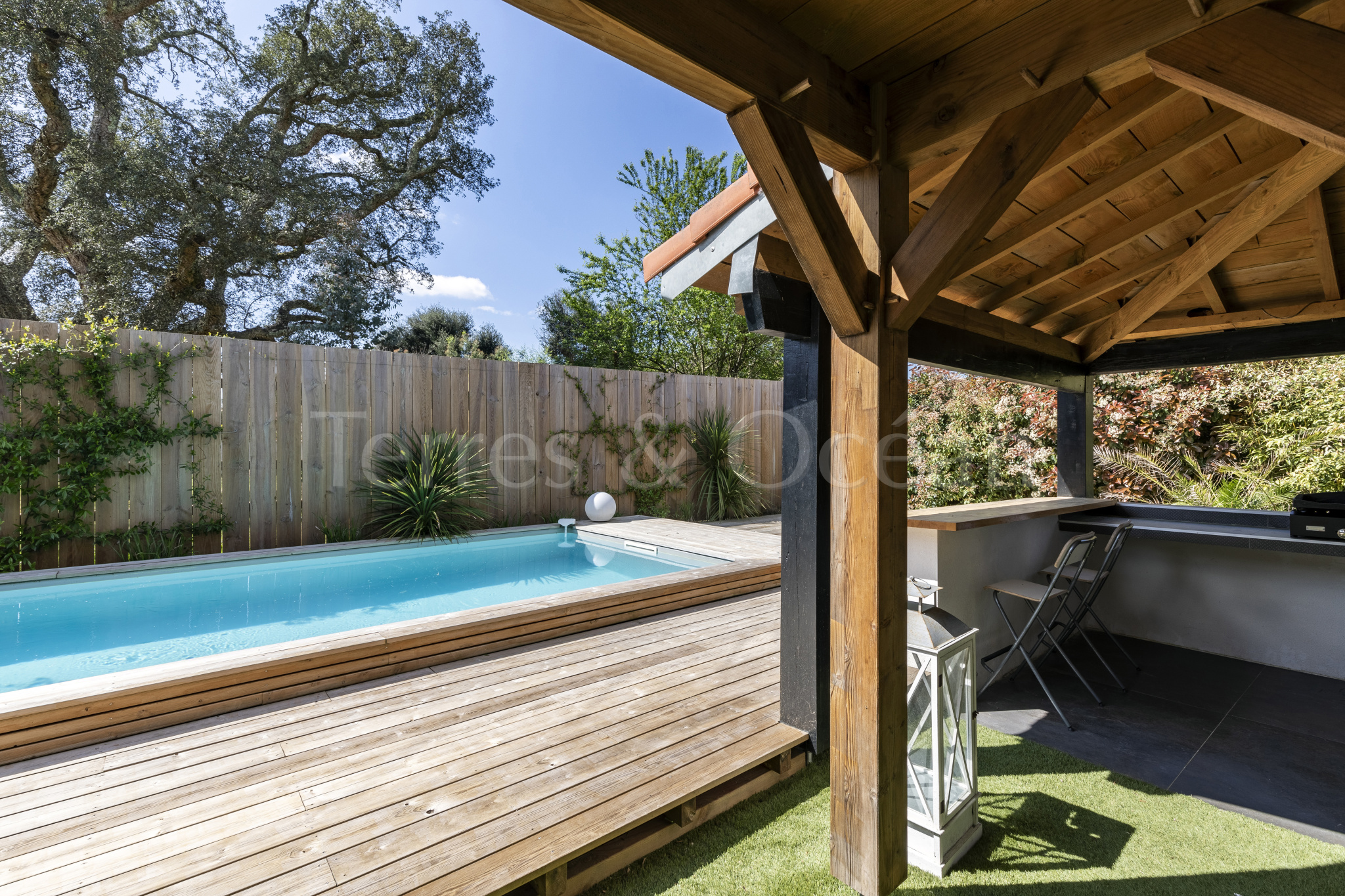 Le jardin est entièrement aménagé et arboré. Une piscine a été créée avec son coin cuisine d’été, barbecue et sa grande terrasse bois, une belle bodega vous permettra de profiter des soirées d’été.