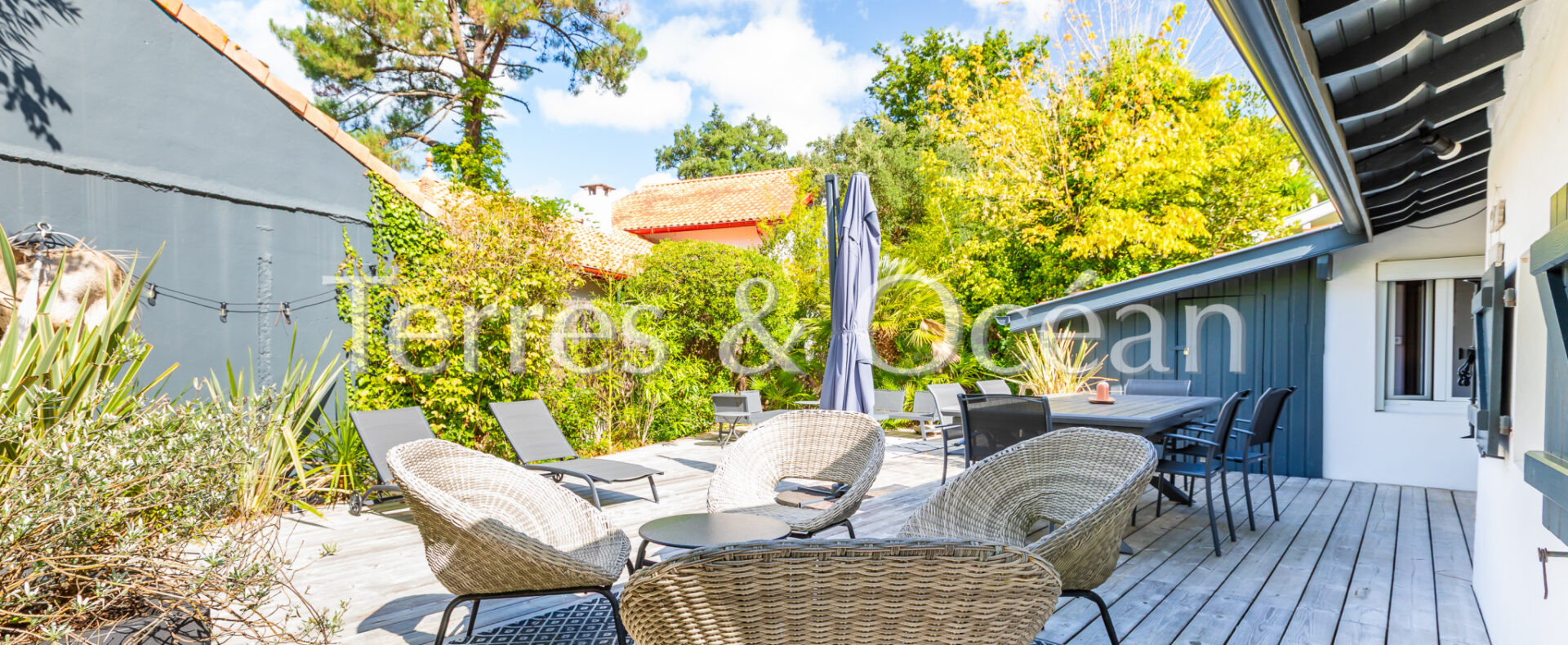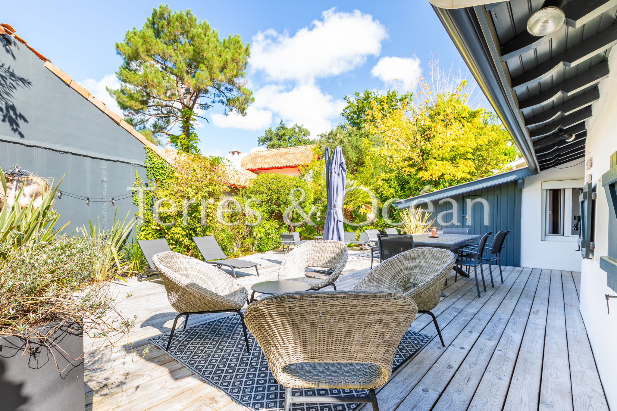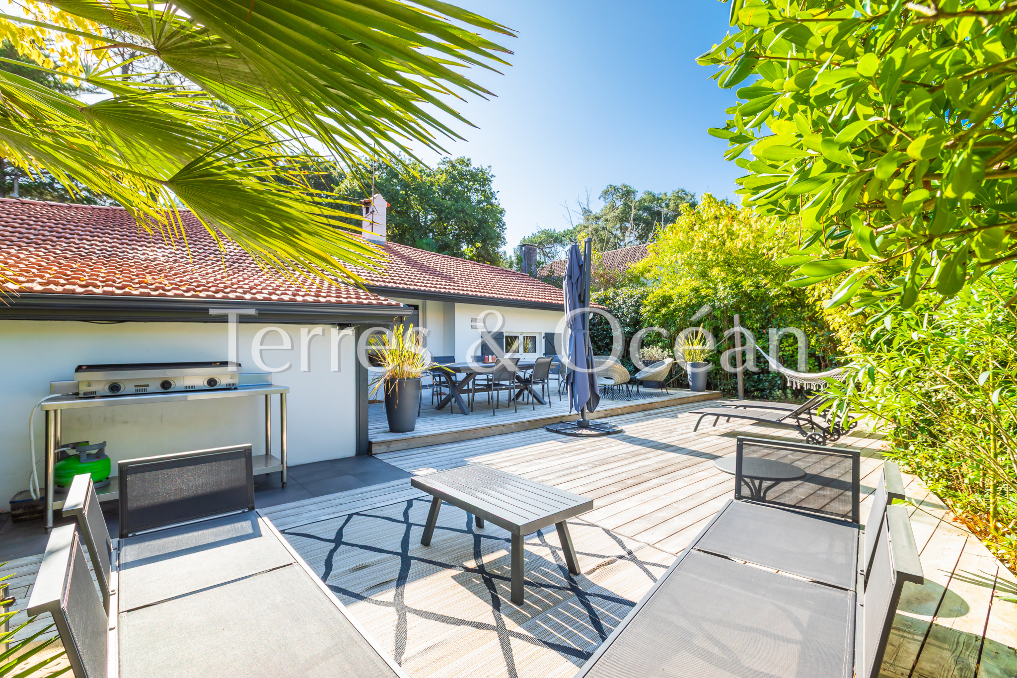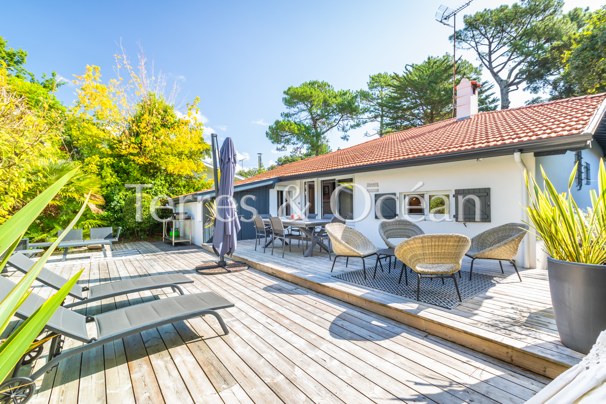 Exceptionnel ! Charmante maison idéalement située à Hossegor, à seulement quelques minutes à pied du centre-ville et du lac. Nichée dans un environnement calme et verdoyant, cette maison de plain-pied allie authenticité et confort moderne. Lumineuse et fonctionnelle, elle est composée d’un double salon avec cuisine ouverte, de 4 chambres, de 3 salles de douche, de 3 wc et une buanderie. Le jardin, intime, est équipée d’une grande terrasse sans aucun vis-à-vis. À deux pas des commerces, du marché, des pistes cyclables, des plages et du lac, elle vous offrira un art de vivre unique. Cette propriété conviendra parfaitement aux modes de vie à l’année comme en saisonnier. Les informations sur les risques auxquels ce bien est exposé sont disponibles sur le site Géorisques : www.georisques.gouv.fr. Proposé par l’agence TERRES & OCEAN immobilier – Agent commercial Alexandra Baudoin Desprez (RSAC 853744217 Dax) Tél : 07.81.75.97.44