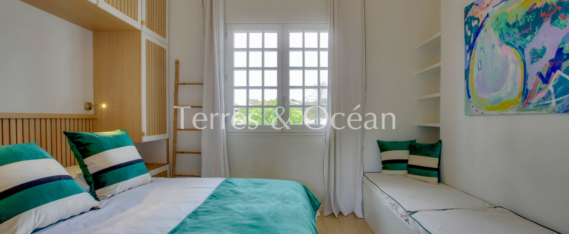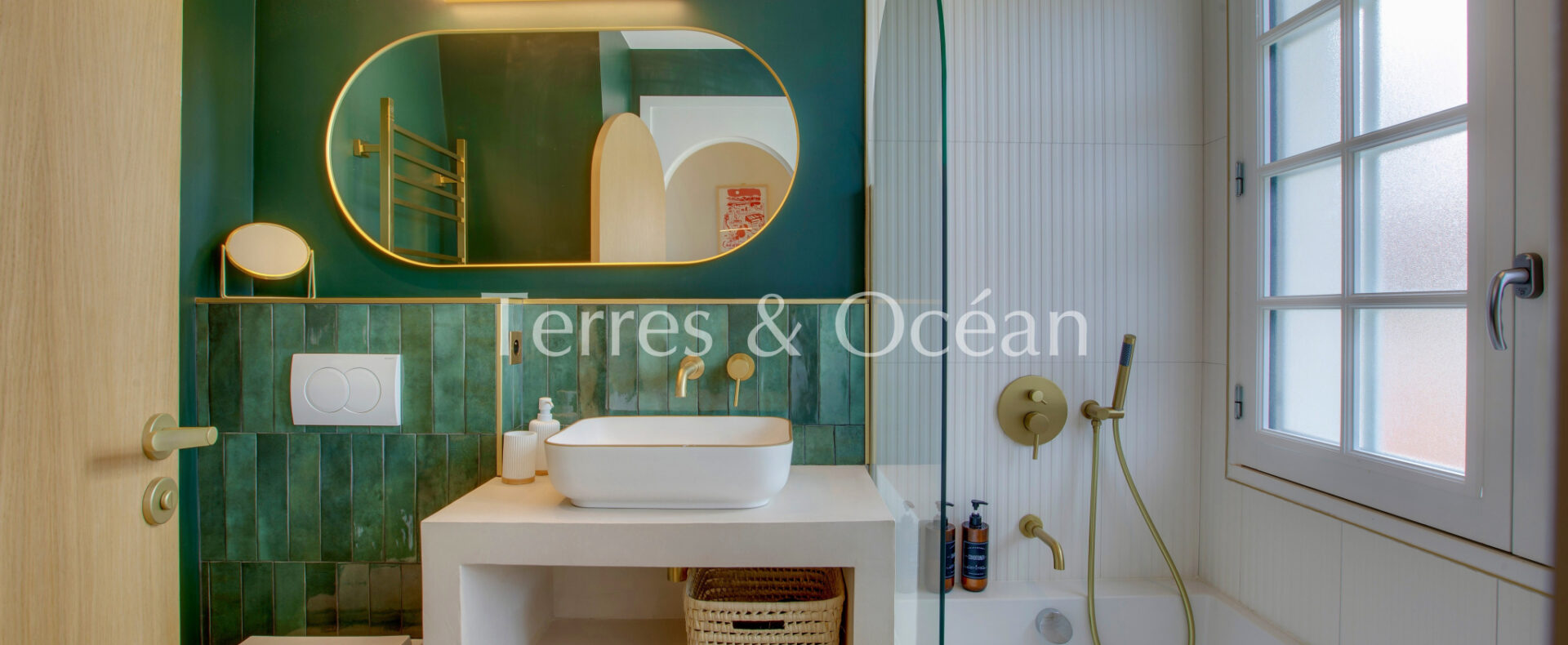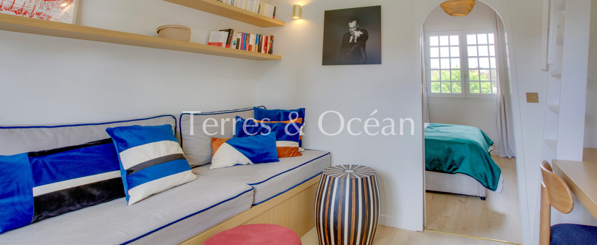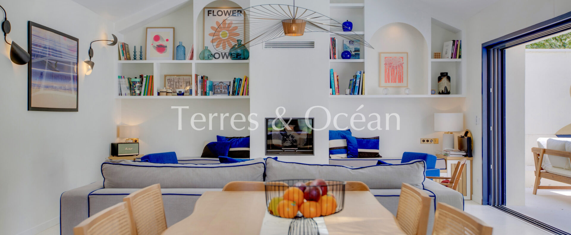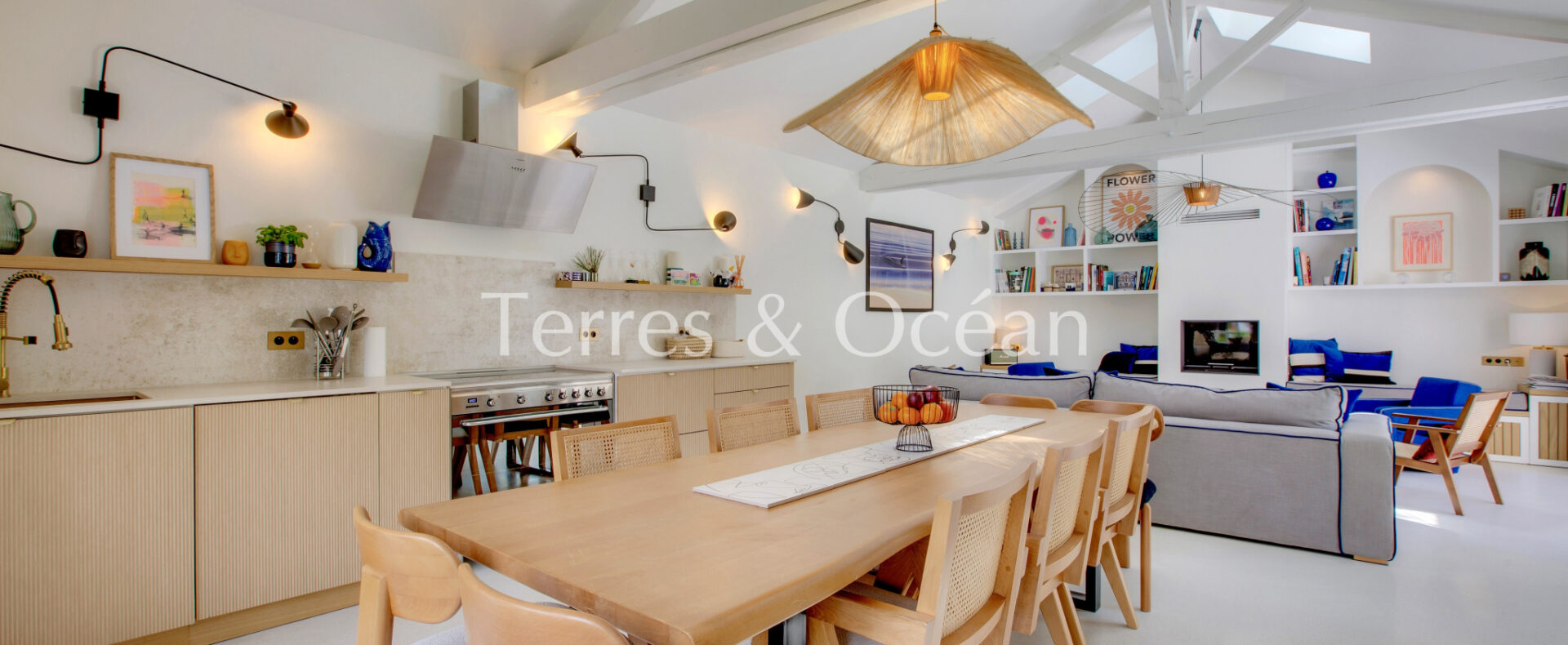 À quelques pas du marché, des commerces et du lac, se dévoile une villa d’exception édifiée en 1937 par l’architecte Louis Lagrange, maître incontesté du style basco-landais. Inscrite au patrimoine local, cette demeure emblématique marie avec justesse l’authenticité de son architecture et le confort de prestations contemporaines, dans un cadre privilégié au coeur d’Hossegor. Entièrement rénovée en 2024 avec des matériaux et finitions haut de gamme, la villa, entièrement climatisée, développe environ 170 m2 de surface au sol, dont 150 m2 habitables, au sein d’un jardin paysager intime. Une déclaration préalable a d’ores et déjà été validée pour l’édification d’une piscine côté sud, si l’acquéreur le souhaite. Le rez-de-chaussée offre une vaste pièce de vie baignée de lumière, réunissant salon, salle à manger et cuisine équipée. Le sol en terrazzo, qui se prolonge vers la terrasse extérieure, crée une parfaite continuité entre intérieur et extérieur. Le mobilier et les banquettes sur-mesure viennent souligner l’élégance de l’ensemble. Trois chambres, chacune avec salle d’eau privative, complètent harmonieusement ce niveau. À l’étage, deux chambres supplémentaires s’accompagnent d’une salle d’eau et d’une salle de bains. Deux mezzanines ouvertes, conçues pour accueillir des couchages d’appoint de qualité, offrent une capacité d’accueil généreuse, sans compromis sur le confort. À l’extérieur, le jardin clos et aménagé, doté d’un forage et d’un système d’arrosage automatique, est sublimé par une fresque originale signée Steven Burke, conférant à la propriété une dimension artistique singulière. Alliance rare entre patrimoine architectural et modernité, finitions soignées et emplacement recherché : cette villa incarne une opportunité unique.