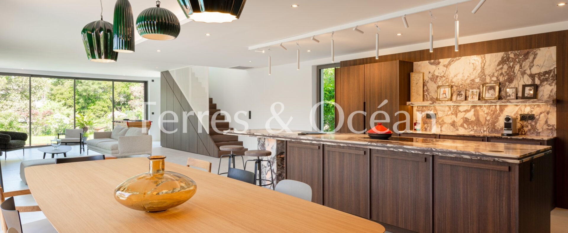 Bien exposée, dans un environnement naturel très qualitatif, elle se compose d’une vaste entrée avec rangements, une pièce de vie de plus de 100m2,, cuisine aménagée et équipée avec des prestations haut de gamme six chambres, dont deux suites avec dressing, 5 pièces d’eau, 4 wc, buanderie, garage.