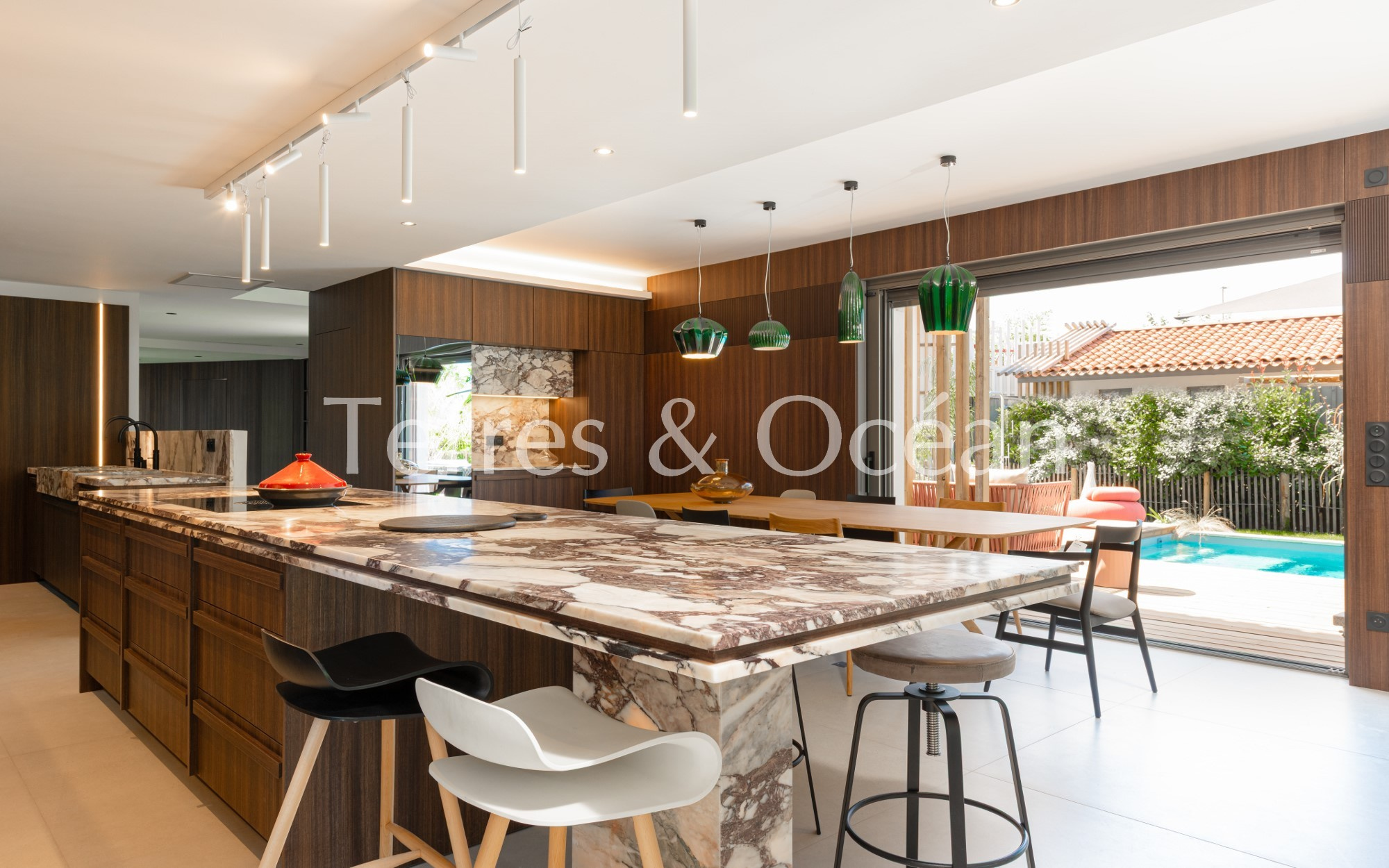 On profitera pleinement des espaces extérieurs avec un jardin, et une piscine chauffée de 4 X 14 m.