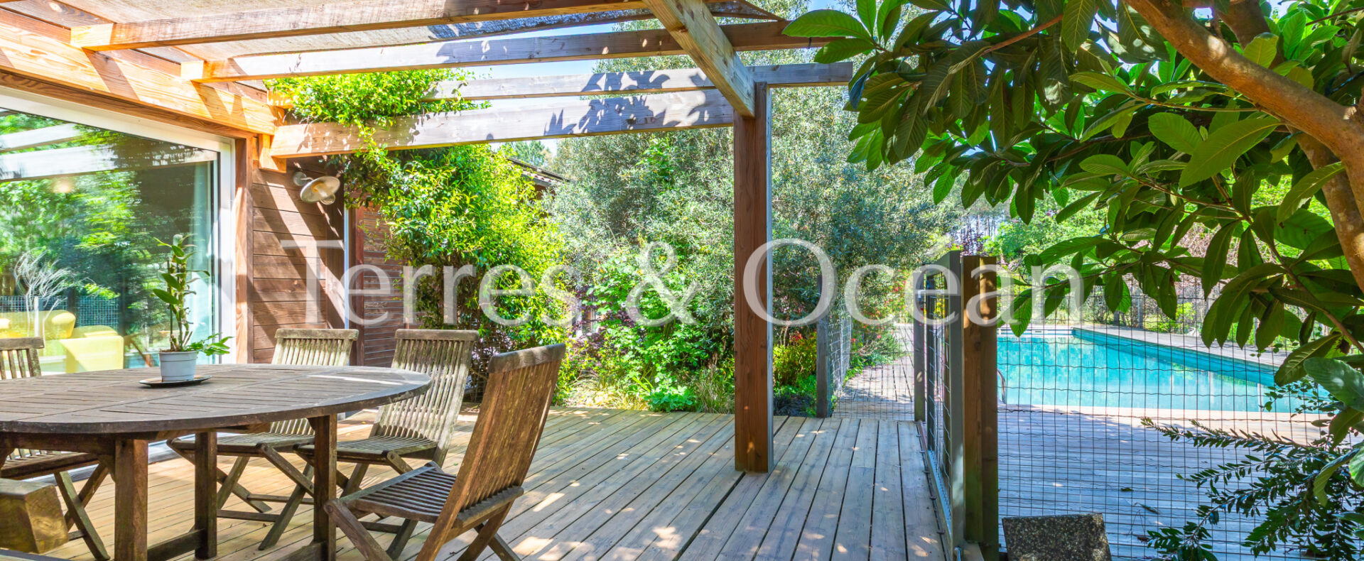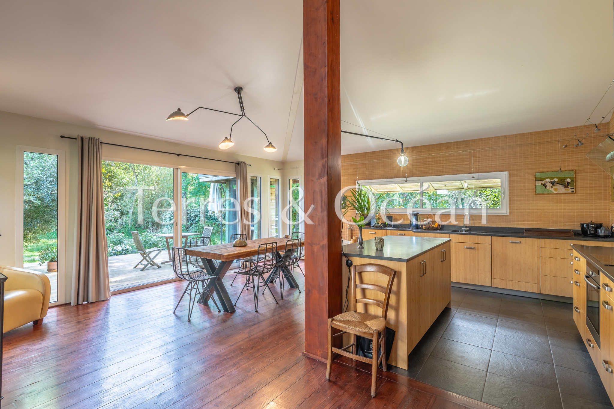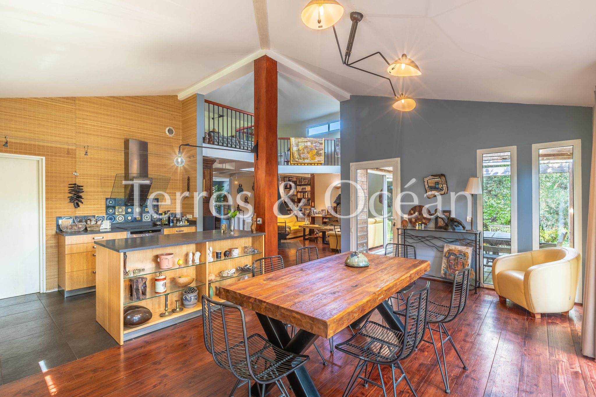 À quelques minutes des plages et des golfs, découvrez cette maison d’exception de plus de 220 m2, nichée dans un environnement calme, arboré et sans vis-à-vis. Construite en 2006 sur un terrain plat de 2 500 m2, elle offre de superbes volumes lumineux, une suite parentale, trois chambres, ainsi qu’un appartement indépendant réalisé en 2022. Son jardin paysager avec grande piscine, terrasse en bois, garage, abris et prestations haut de gamme en font un véritable havre de paix. Un bien rare, alliant confort, espace et emplacement privilégié.