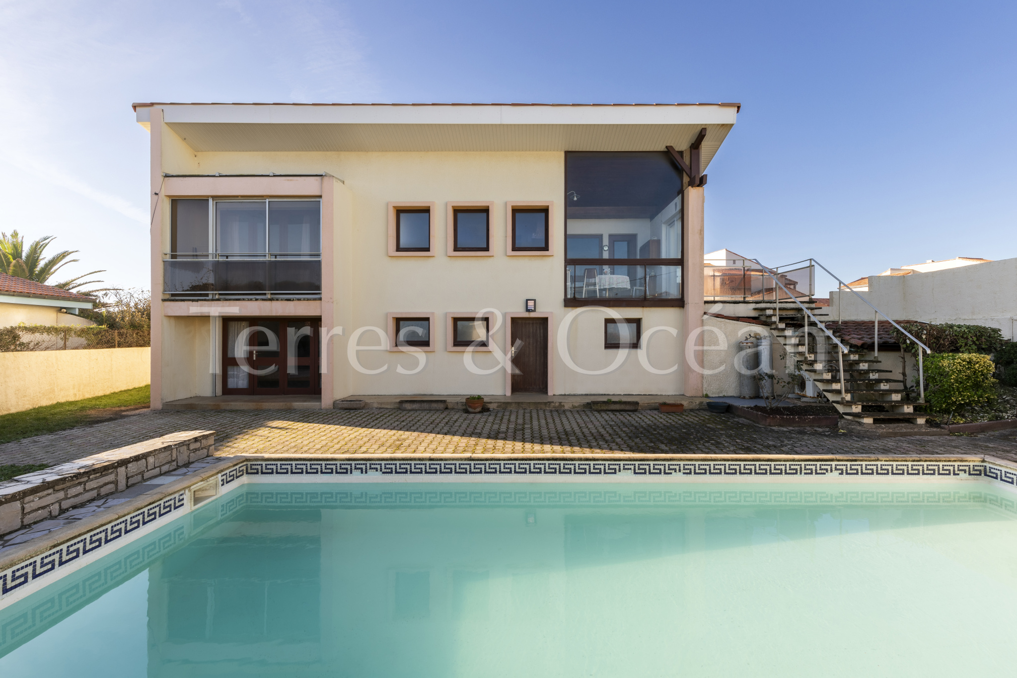 Sur un emplacement privilégié à deux pas de la plage, centre-ville à pied ou à vélo, maison des années 60 sur un beau terrain de 1000m2, avec un grand garage indépendant de 45 m2 et une piscine. La maison développe plus de 170m2 de surface, et offre une vue océan depuis la terrasse sud de l’étage. Elle dispose de deux accès nord et sud, et offre un superbe potentiel pour une maison de vacances ou une résidence principale.