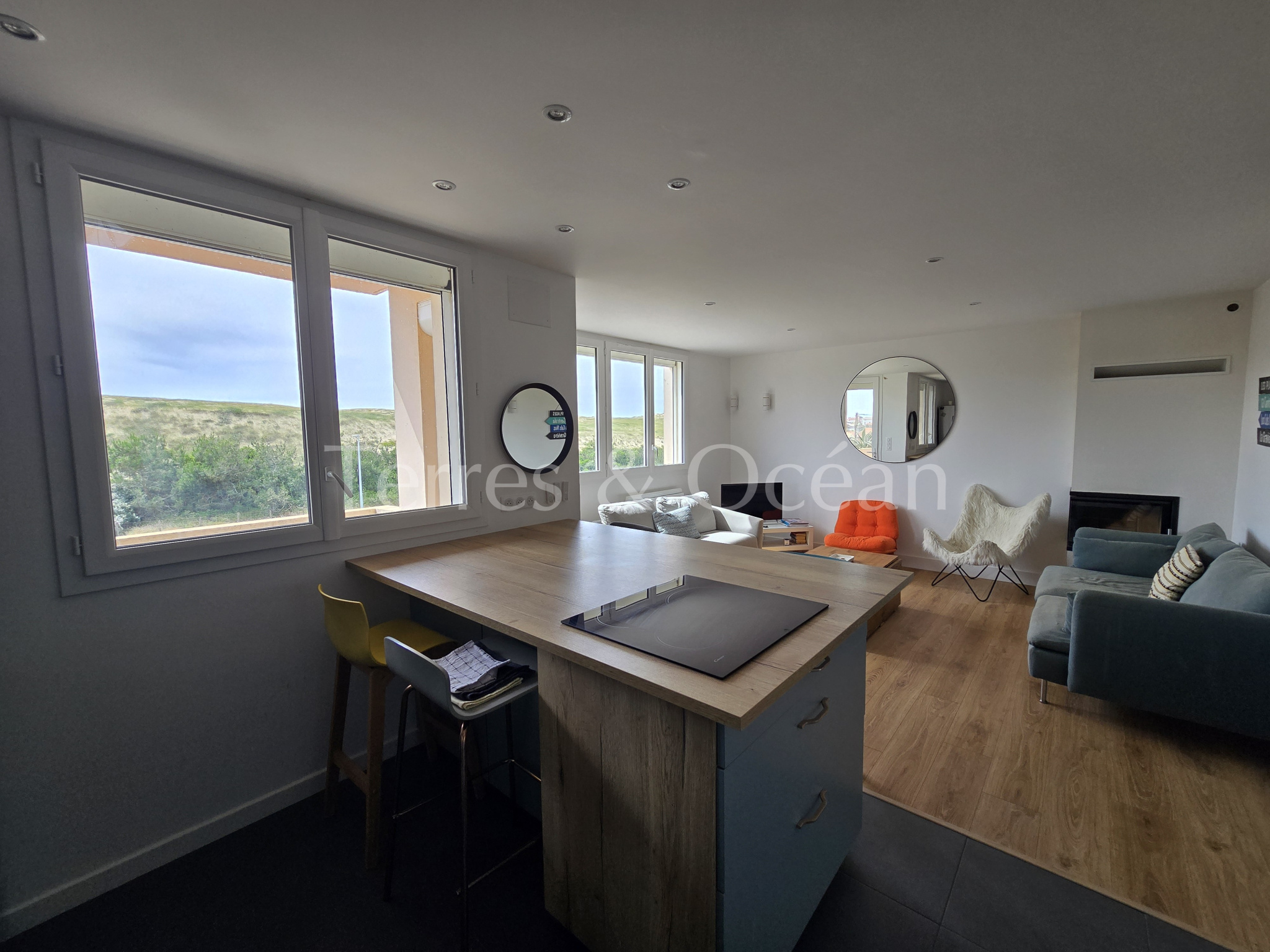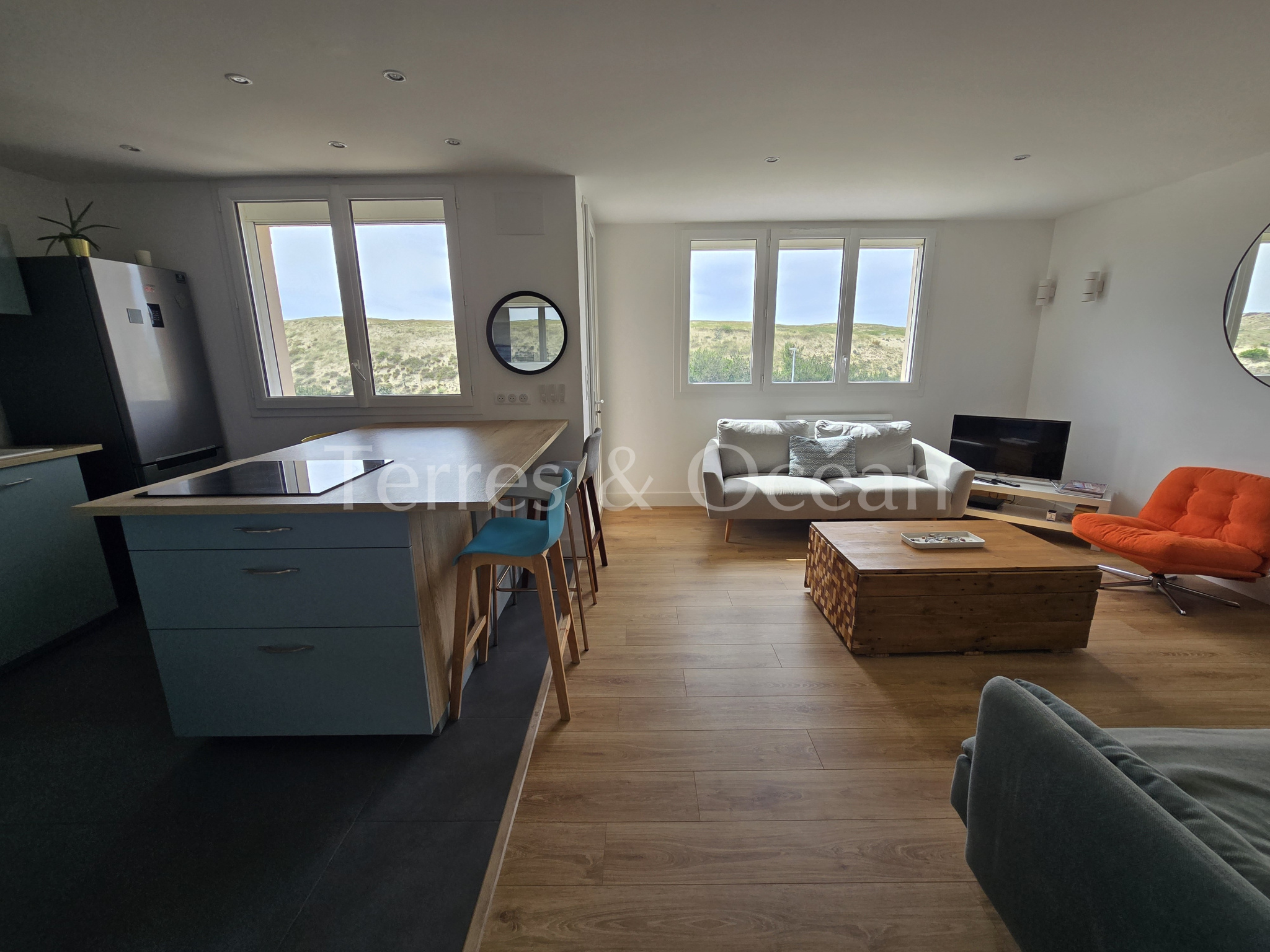 Hossegor La Gravière, face aux dunes, cet appartement de type T3 bis de 70 m2 offre un cadre de vie exceptionnel, les pieds dans le sable. Entièrement rénové en 2020 avec des prestations de qualité, il se compose d’une pièce de vie lumineuse avec cuisine us, un insert, ouvrant sur un balcon exposé Ouest. Il dispose d’une suite parentale avec dressing, salle d’eau et balcon privatif, d’une chambre, d’une seconde salle d’eau, d’un wc séparé et d’un cellier. Un garage et un local vélo complètent ce bien rare. Mode de vie tout à pied, lac, océan, centre ville et commodités.