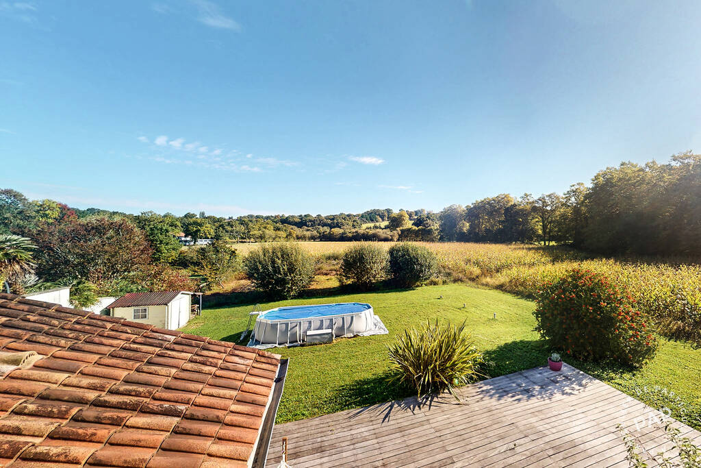 Sur un beau terrain de 1500 m2, au calme, cette maison de construction traditionnelle offre de très belles vues sur la campagne environnante et le golf de Bassussary, à l’abri de tout vis-à-vis.