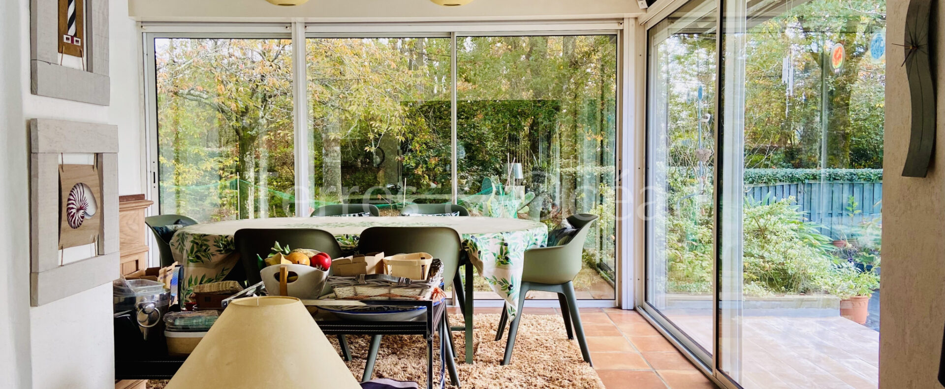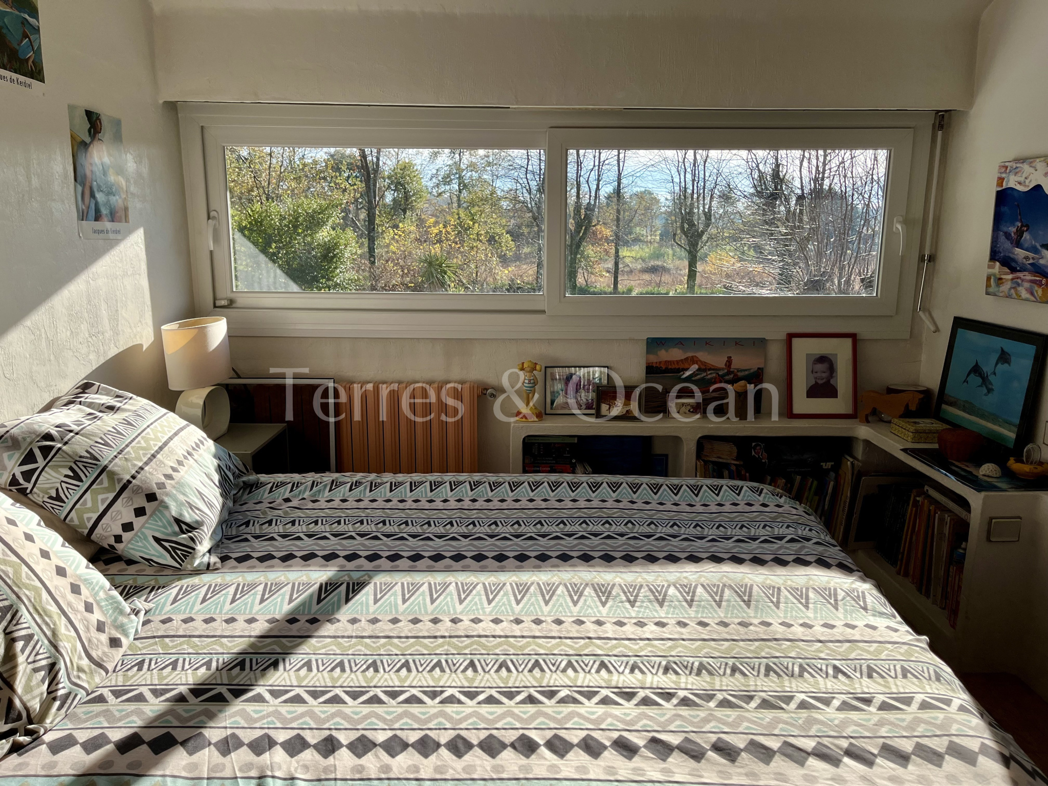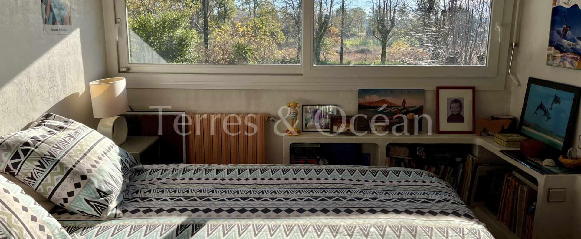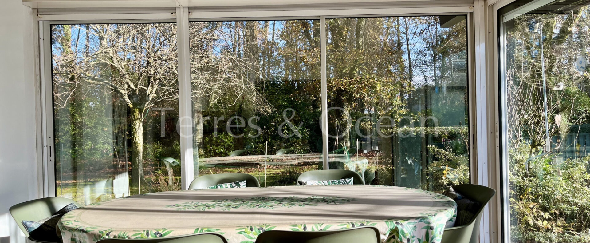 Rare à la vente ! Située dans un cadre privilégié en pleine nature, à l’entrée de Soustons, cette magnifique maison d’architecte conçue par François Gassan s’étend sur environ 180 m2 habitables et est entourée d’un parc arboré de plus de 5000 m2. Un véritable havre de paix, à proximité de la ville tout en étant en pleine nature. Elle se compose d’un grand séjour lumineux avec cheminée, ouvert sur une véranda qui laisse entrer la lumière de part et d’autre de la pièce de vie. La salle à manger, adjacente, communique avec une cuisine fermée, le double cellier et l’accès direct au garage rend l’ensemble pratique au quotidien. Au même niveau, de plain-pied, la maison dispose d’une chambre parentale avec dressing et salle de bains avec douche, offrant une vue sur la piscine. À l’étage, vous trouverez trois belles chambres, une salle de douche, un bureau et des toilettes séparées. Les pièces de vie du rez-de-chaussée s’ouvrent sur une terrasse exposée plein sud avec pergola bioclimatique, idéale pour profiter des journées ensoleillées, ainsi qu’une piscine de 11 x 7 mètres, entourés d’essences fleuries. Cette maison est équipée de nombreux dispositifs pour allier confort et économie : climatisation réversible, panneaux solaires et photovoltaïques, arrosage automatique, prise pour voiture électrique et bien plus encore. Côté rangement, vous ne manquerez pas d’espace : trois cabanons, un grand garage et de nombreux espaces de stockage tant à l’intérieur qu’à l’extérieur de la maison. Que ce soit pour une résidence principale ou secondaire, cette propriété unique saura vous charmer par son architecture, ses équipements modernes et son environnement exceptionnel. DPE en cours. Renseignements techniques : Les informations sur les risques auxquels ce bien est exposé sont disponibles sur le site Géorisques :www.georisques.gouv.fr. Proposé à la vente par l’agence TERRES & OCEAN immobilier prix frais d’agence de 5% inclus : 990000€ soit 943000€ net vendeur. Agent commercial : Mathilde Vintrou (RSAC 918 907 767 Toulouse) tel: 07.81.86.40.19
