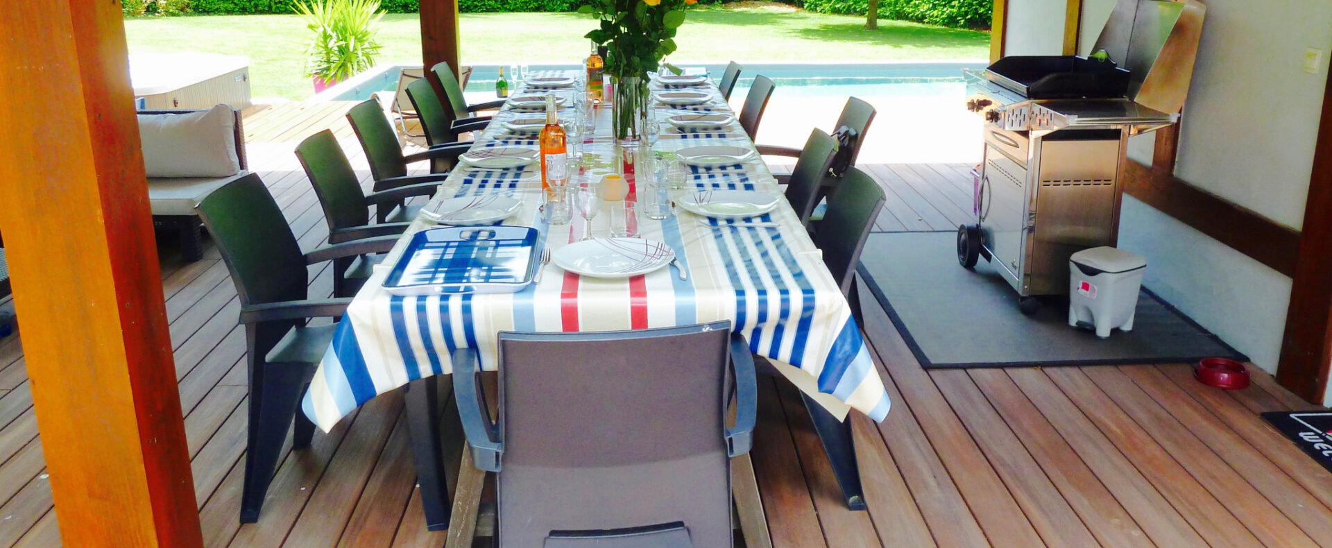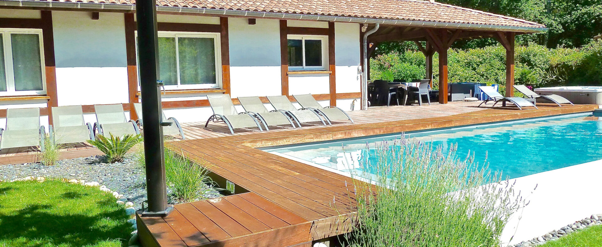 Authenticité, confort et tranquillité réunis dans un cadre exceptionnel. Nichée dans un quartier prisé pour son calme absolu et sa proximité avec la nature, cette maison d’environ 145m2, à l’architecture locale, de plain-pied, offre une grande capacité d’accueil avec ses cinq chambres confortables et sa dépendance d’environ 60m2. Grande pièce de vie, cuisine séparée, deux salles de douche, deux WC et un espace buanderie. Grande terrasse couverte, véritable pièce de vie extérieure, donne sur la piscine et le jacuzzi 5 places, plongé dans un environnement paisible et verdoyant ne souffrant d’aucuns vis à vis. Dépendance avec cuisine ouverte sur le salon, chambre, salle de douche avec WC. Ce bien rare offre un cadre de vie unique, alliant nature, confort et grande capacité d’accueil à proximité des plages. Parfait pour une résidence principale, une maison de vacances ou un projet de location, rendement locatif très intéressant. Renseignements techniques : les informations sur les risques auxquels ce bien est exposé sont disponibles sur le site Géorisques : www.georisques.gouv.fr. DPE 207 D 6 B consommations moyennes 2045€ estimées sur l’année 2021. Proposé à la vente par l’agence TERRES & OCEAN immobilier – Agent commercial Mme Mathilde VINTROU RSAC 918907767