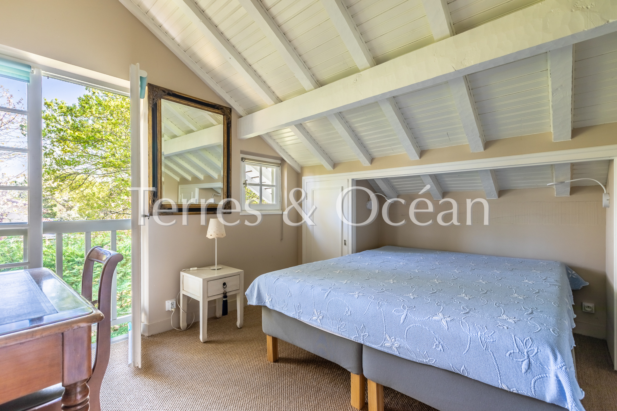 A l’étage 2 chambres lumineuses, 1 chambre enfant mansardée et une salle d’eau.