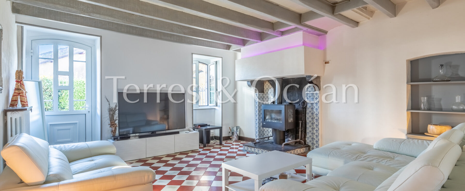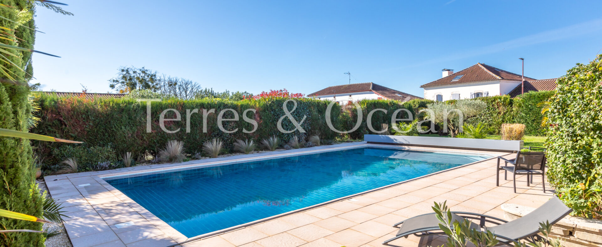Entièrement rénovée, cette belle bâtisse allie modernité et charme de l’ancien. Elle est idéalement située au coeur d’un magnifique village, proche d’une boulangerie et d’une école. La commune de Peyrehorade et l’accès à l’entrée d’autoroute sont accessibles en quelques minutes, l’océan en 25 minutes. Au calme et sur un terrain clos paysagé d’environ 1000m2 avec piscine chauffée et sécurisée au sel, cette propriété avec ses 6 chambres et ses dépendances offre de multiples possibilités (gite, chambres d’hôtes, profession libérale…). Un garage, un atelier et une buanderie complètent l’offre de ce bel ensemble immobilier aux prestations qualitatives.
