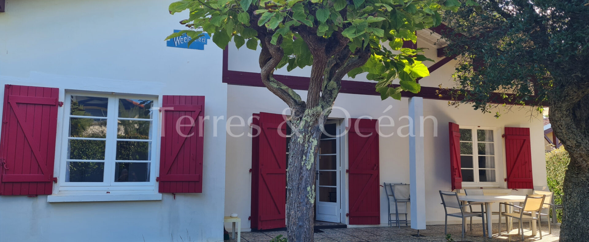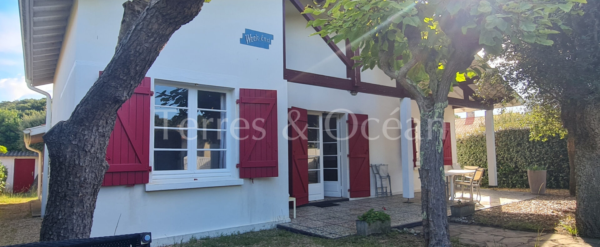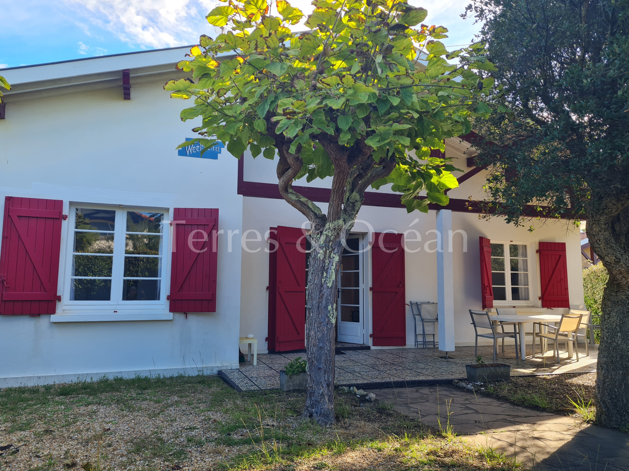 SOUS-COMPROMIS – Dans une rue calme et recherchée à deux pas des plages et proche centre-ville d’Hossegor, cette maison des.années 60 bénéficie d’une bonne exposition et d’un joli jardin arboré. Elle se compose en rez-de-chaussée, d’un salon, cuisine ouvrant sur une salle à manger véranda, quatre chambres et deux salles d’eau. En étage, une chambre d’appoint avec sa salle d’eau, et une grande pièce à aménager d’une vingtaine de m2. Ce bien rare offre un très beau potentiel dans un environnement privilégié. Les informations sur les risques auxquels ce bien est exposé sont disponibles sur le site Géorisques :www.georisques.gouv.fr