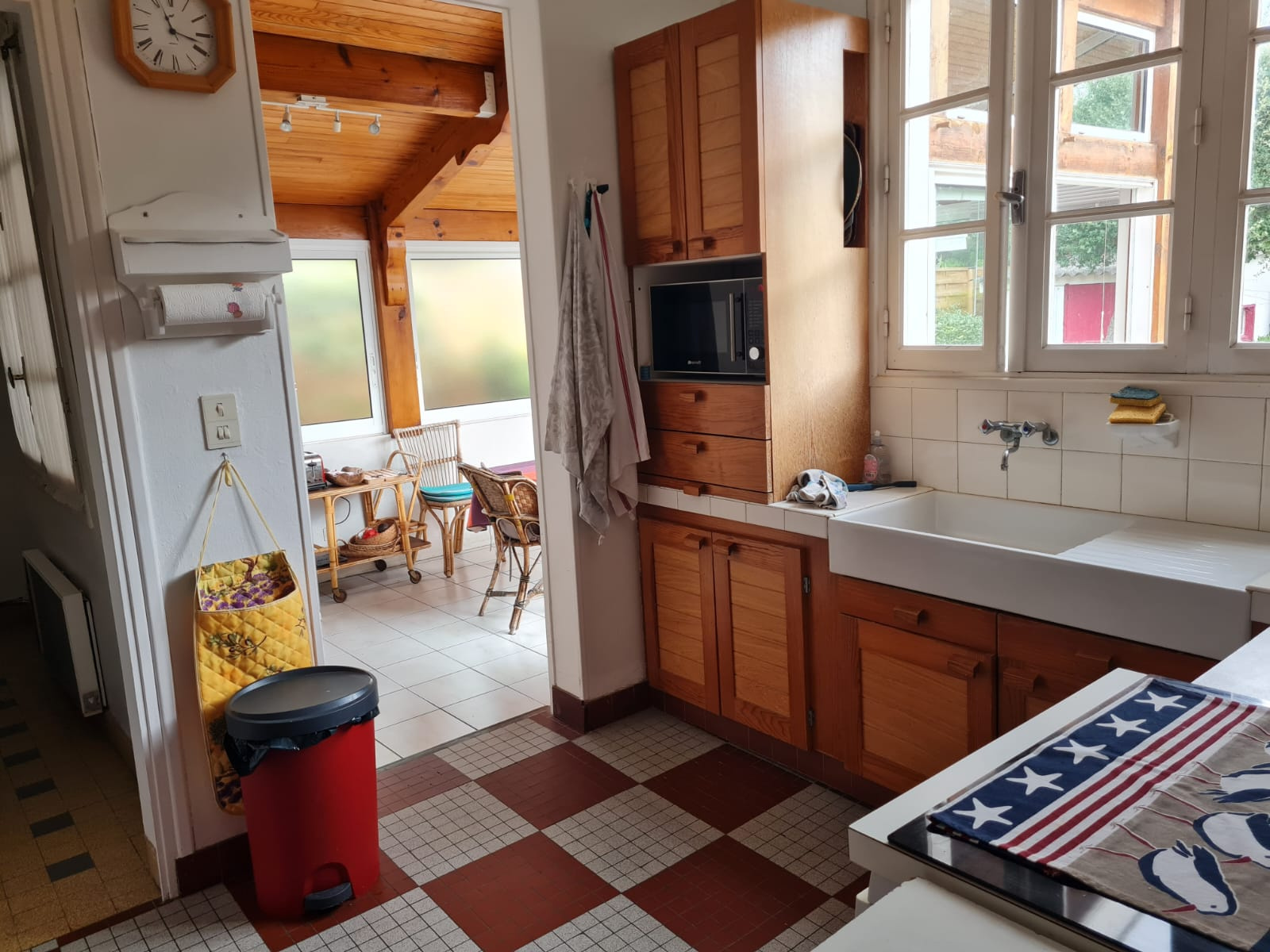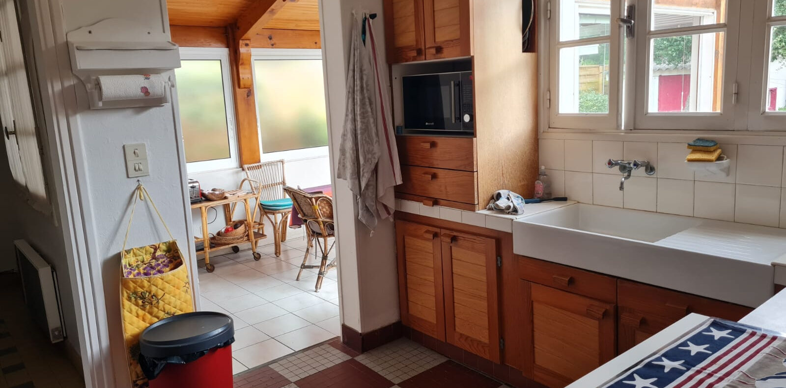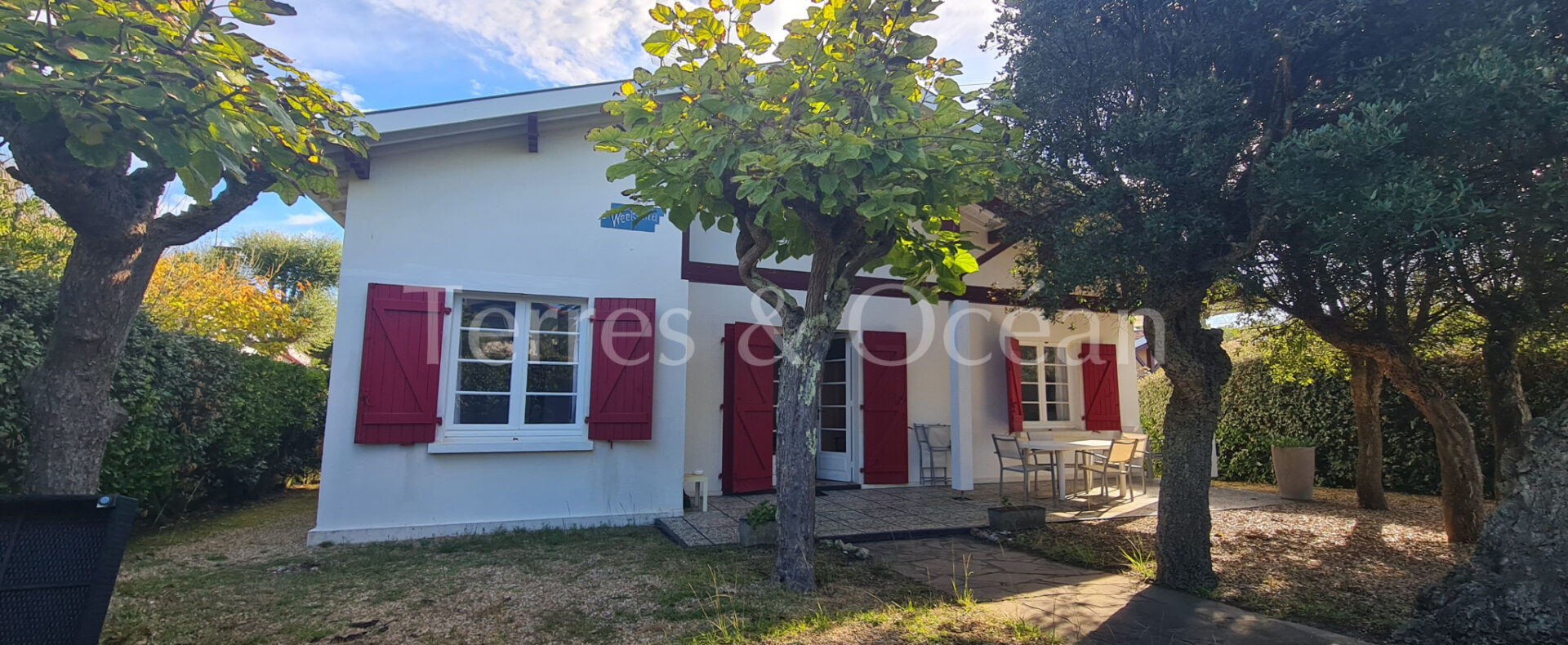 SOUS-COMPROMIS – Dans une rue calme et recherchée à deux pas des plages et proche centre-ville d’Hossegor, cette maison des.années 60 bénéficie d’une bonne exposition et d’un joli jardin arboré. Elle se compose en rez-de-chaussée, d’un salon, cuisine ouvrant sur une salle à manger véranda, quatre chambres et deux salles d’eau. En étage, une chambre d’appoint avec sa salle d’eau, et une grande pièce à aménager d’une vingtaine de m2. Ce bien rare offre un très beau potentiel dans un environnement privilégié. Les informations sur les risques auxquels ce bien est exposé sont disponibles sur le site Géorisques :www.georisques.gouv.fr
