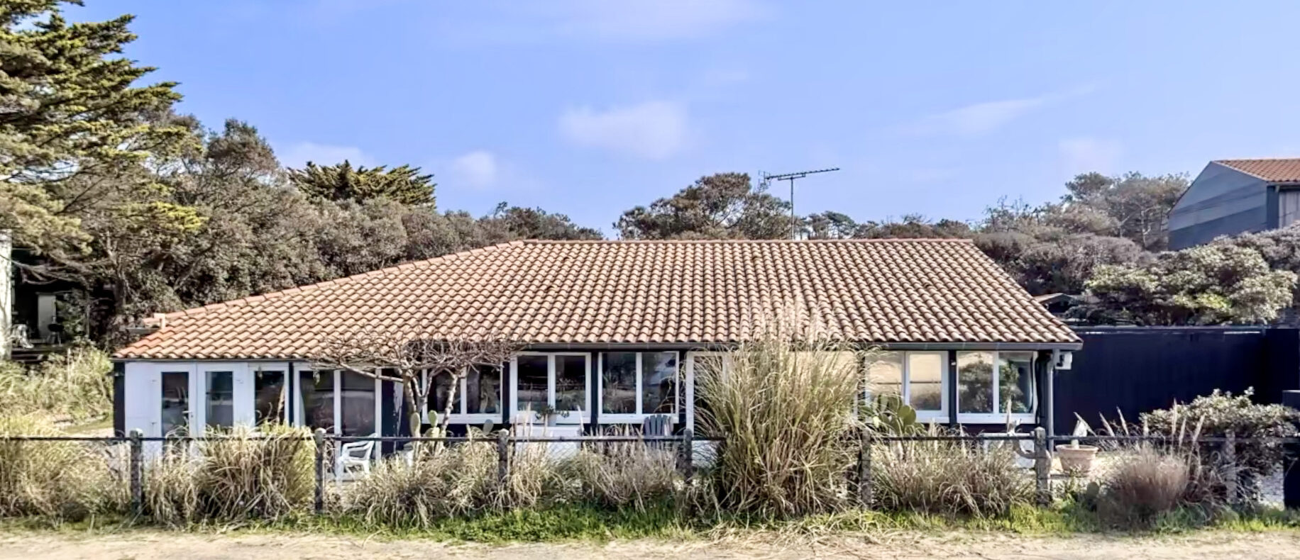 Maison de plain-pied d’environ 100m2 sur terrain de 970m2, s’adresse aux amoureux de l’océan.