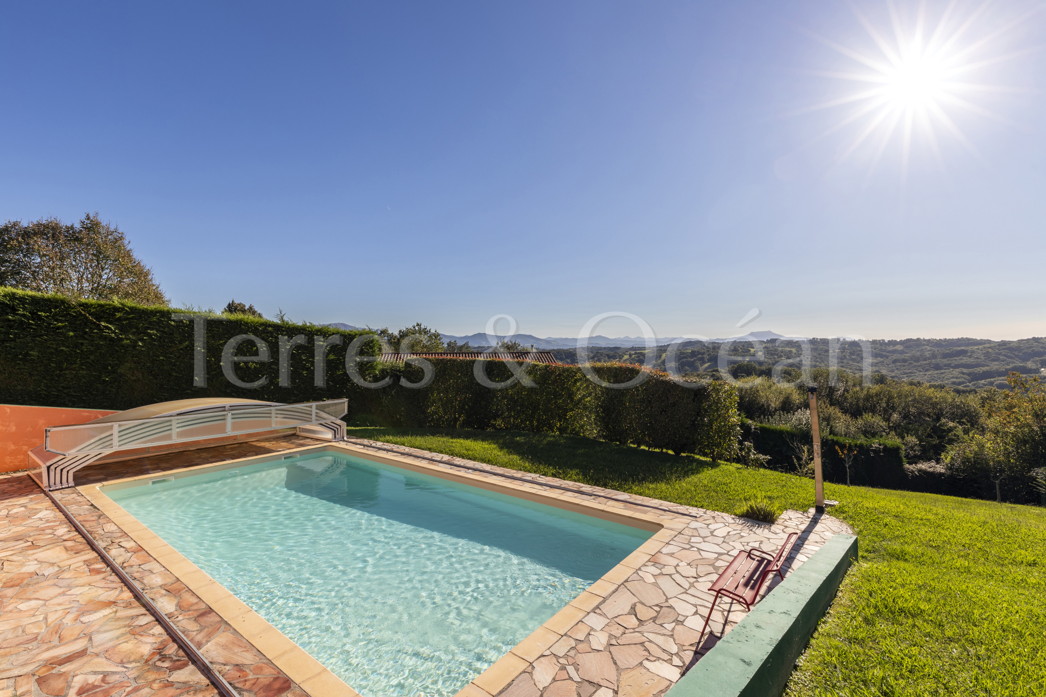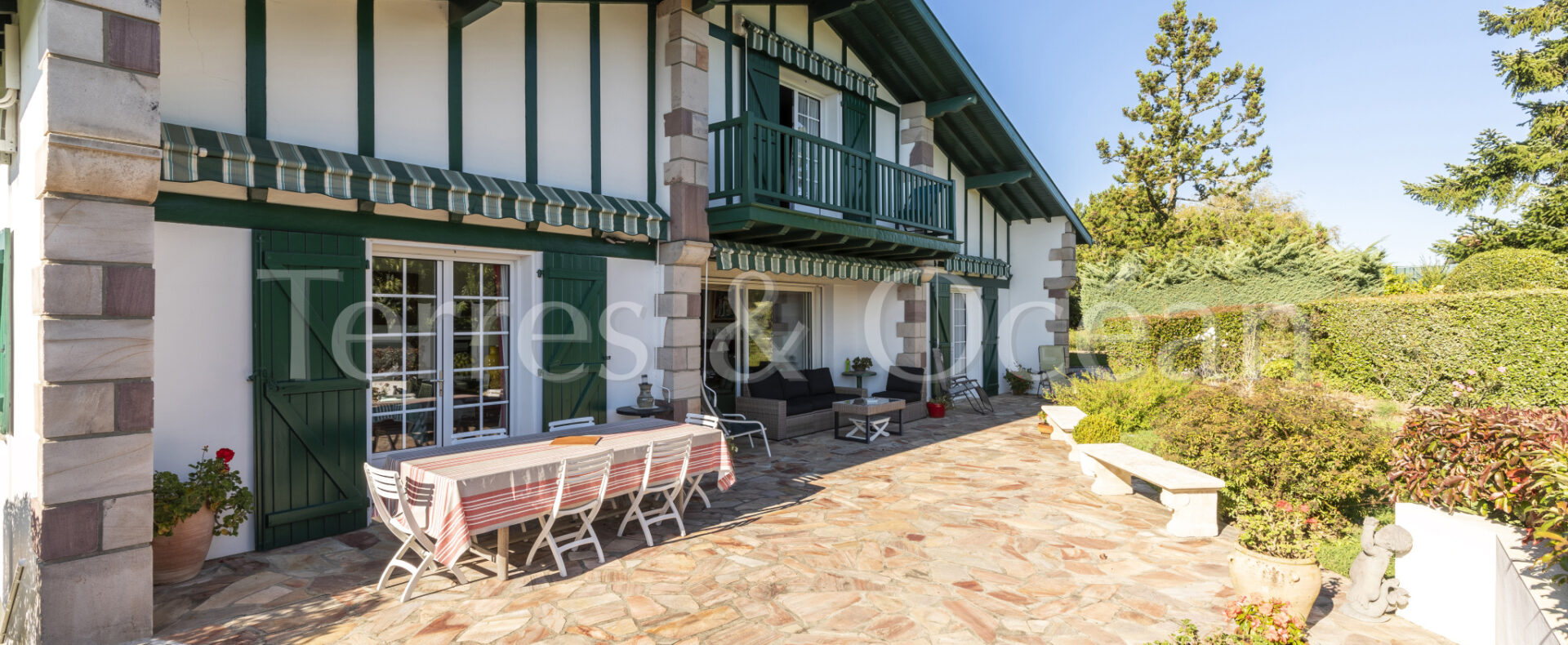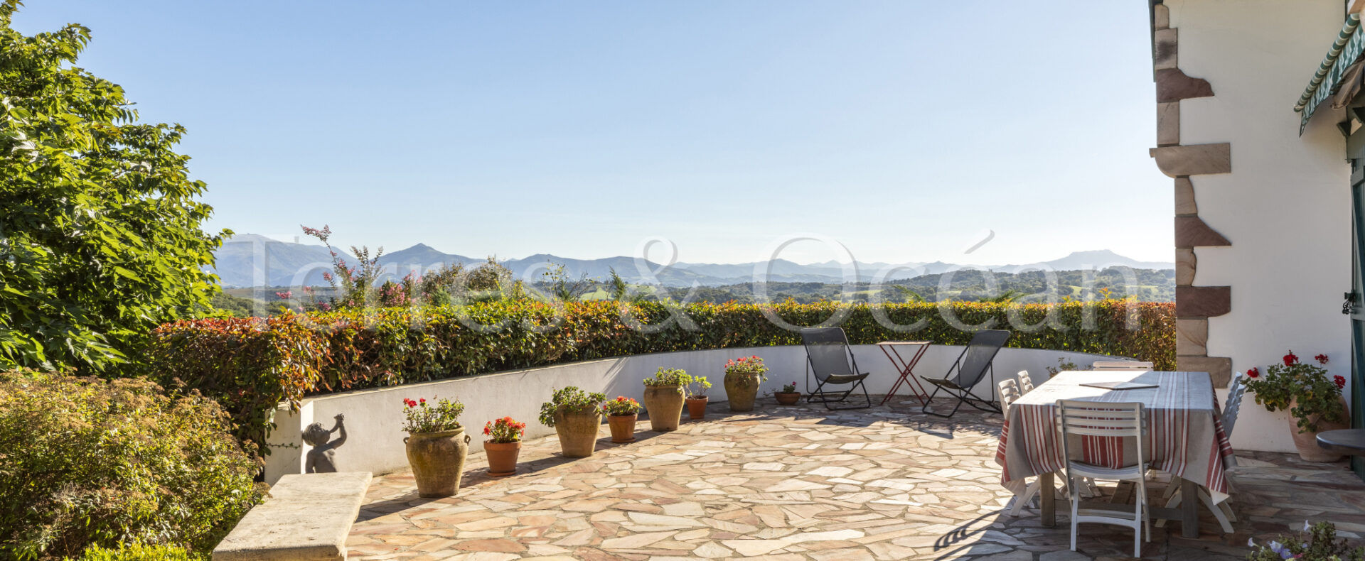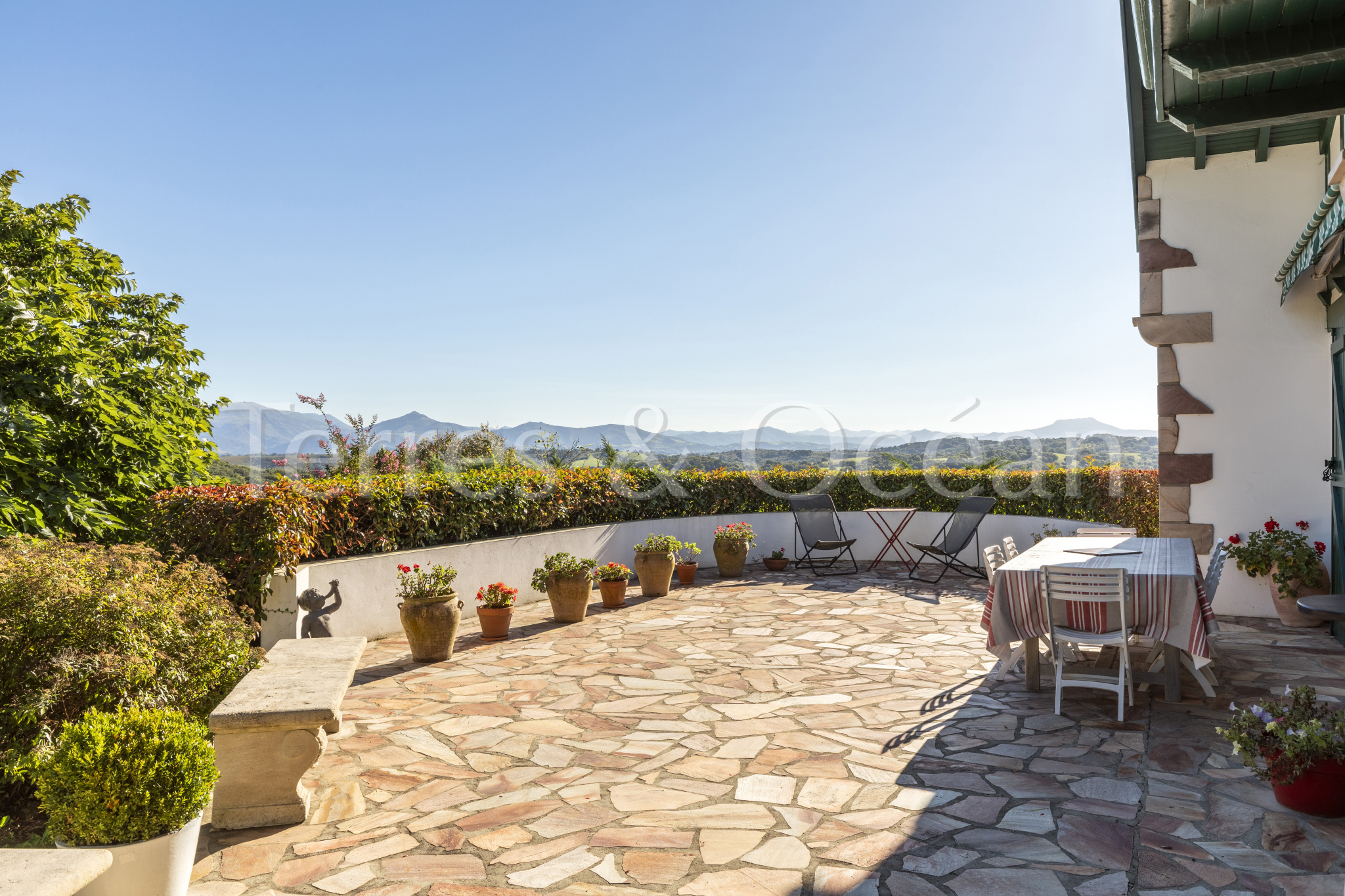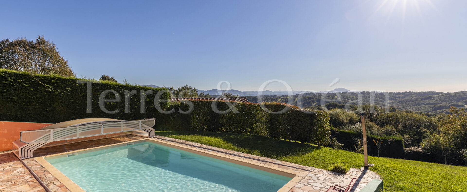 A 10 minutes de Bayonne et 15 min de la côte basque et Biarritz, cette belle villa de style basque offre une vue magnifique à 180 degrès sur les Pyrénées, plein Sud. On se trouve en position dominante au coeur des collines basques, et au calme. La maison de type 5 possède en rez de chaussée une suite, et 3 autres chambres à l’étage. La construction est traditionnelle et de qualité. Le séjour salon est traversant, complètement ouvert et entouré par le parc, une spacieuse terrasse idéalement orientée prolonge les espaces de vie et donne face aux collines basques et la chaine de Pyrénées. 130 m2 supplémentaires avec un garage, une cave à vin, un espace buanderie, des greniers et un sous-sol complètent ce bien ainsi qu’une confortable piscine. Beau et grand parc. DPE(D) GES(D). Les informations sur les risques auxquels ce bien est exposé sont disponibles sur le site Géorisques : www.georisques.gouv.fr