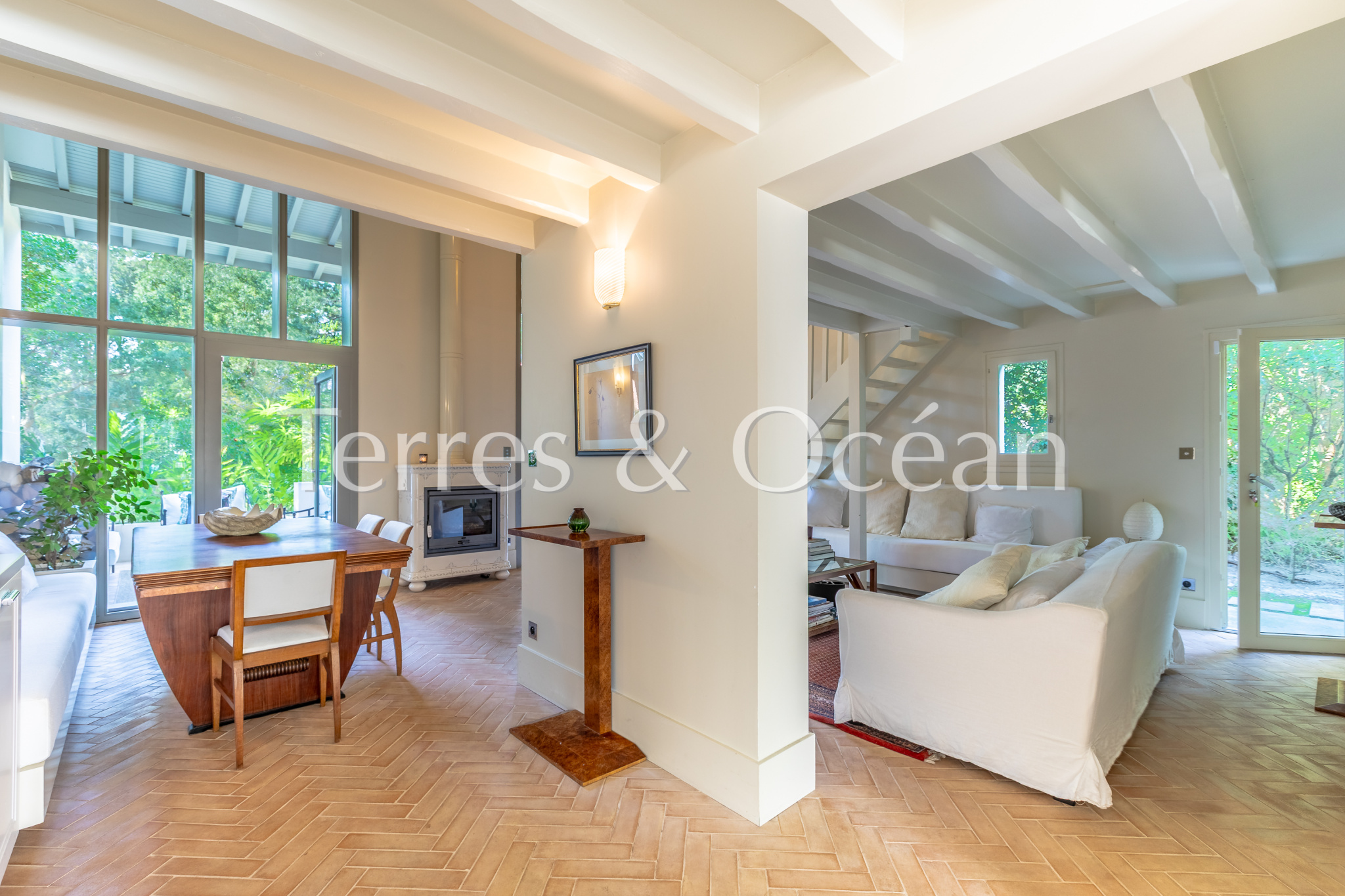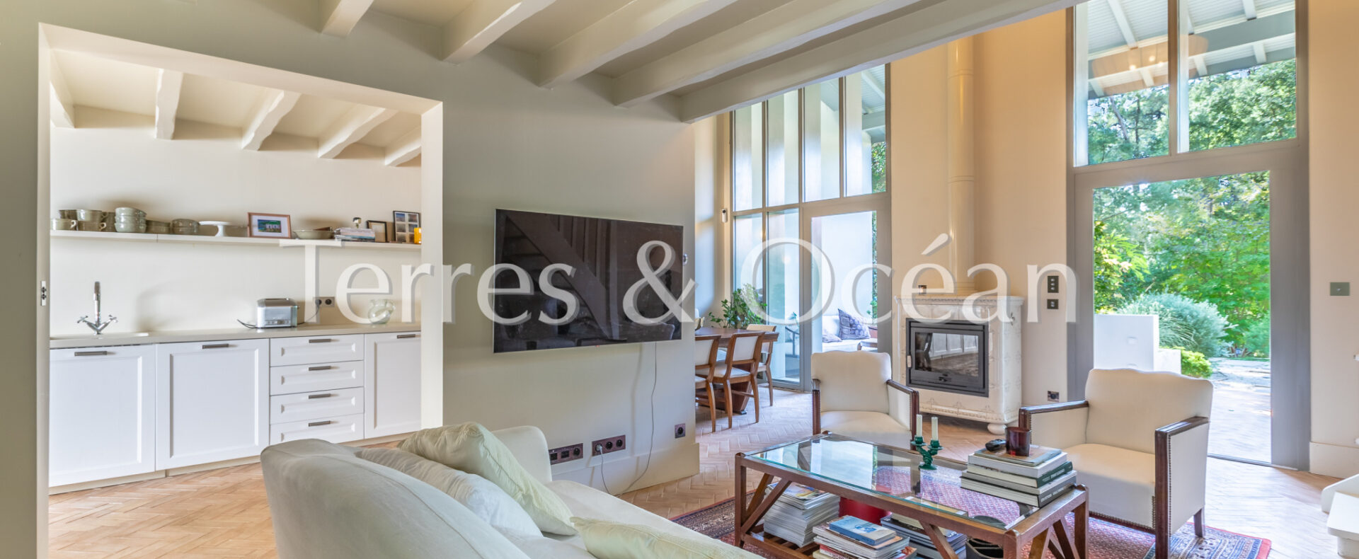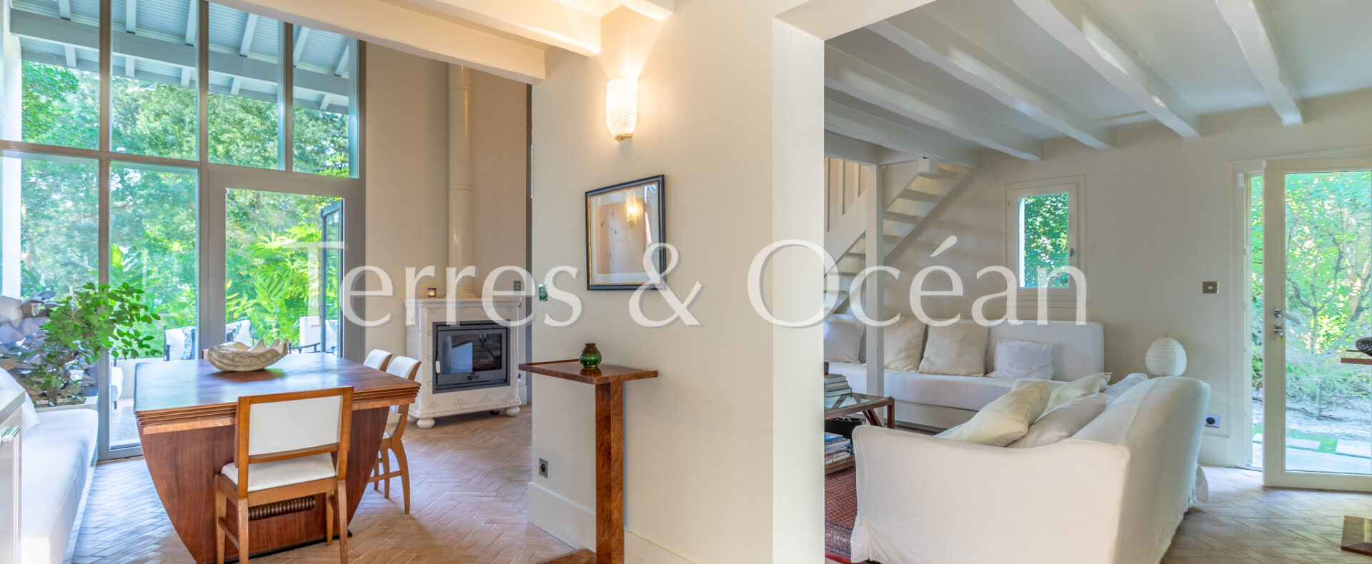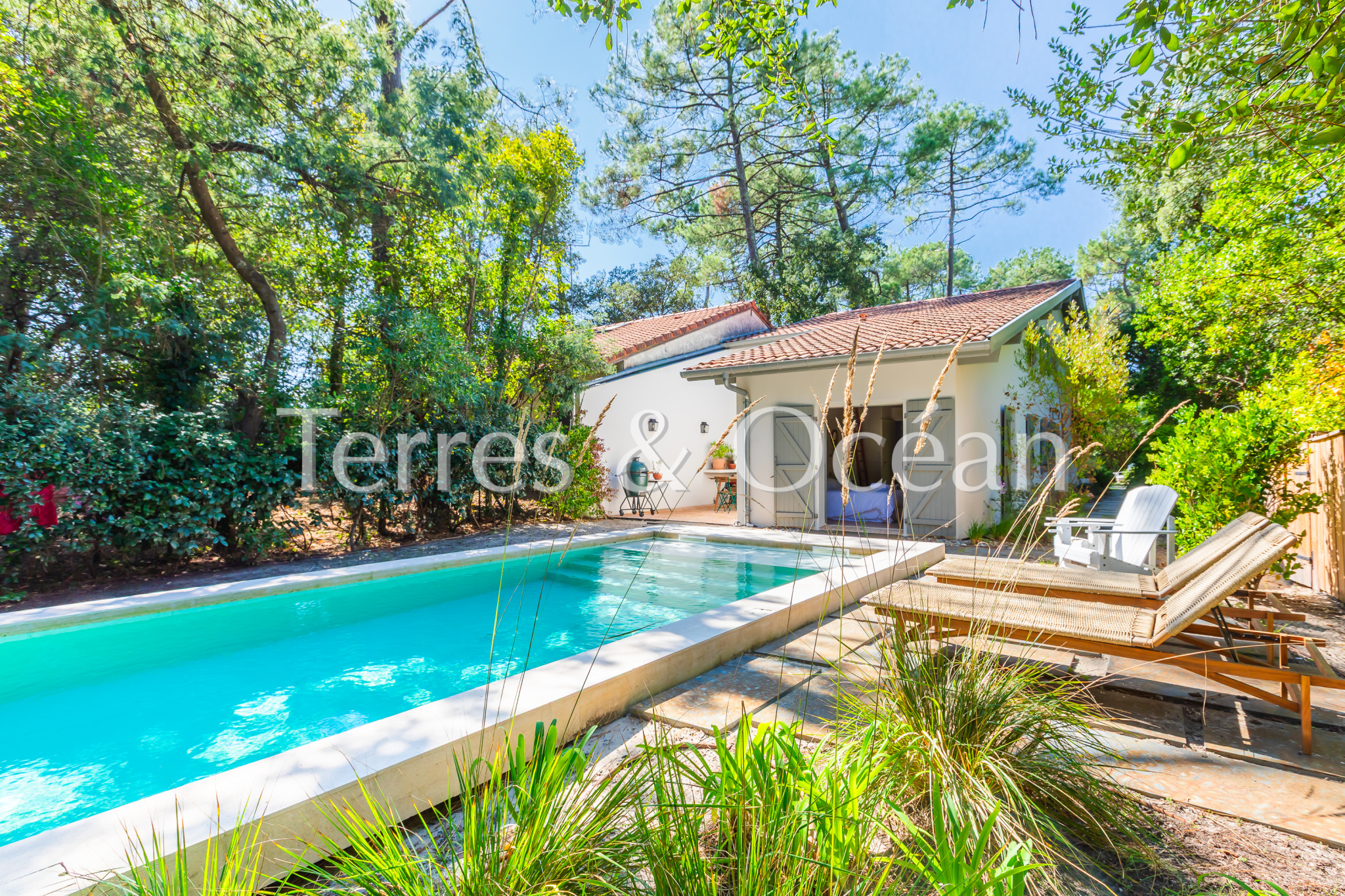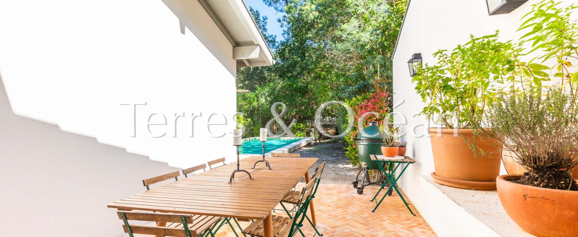 A proximité des plus belles plages et du lac d’Hossegor, au grand calme, sur un jardin intimiste et arboré. Charmante maison entièrement rénovée en 2023 d’environ 103m2 avec piscine chauffée. Elle est composée d’une sublime pièce de vie avec son séjour cathédrale entièrement vitré, salle à manger et cuisine US donnant sur deux spacieuses terrasses. La partie nuit est composée d’une suite parentale en rez de chaussée et de deux chambres à l’étage, avec leurs salles d’eau.