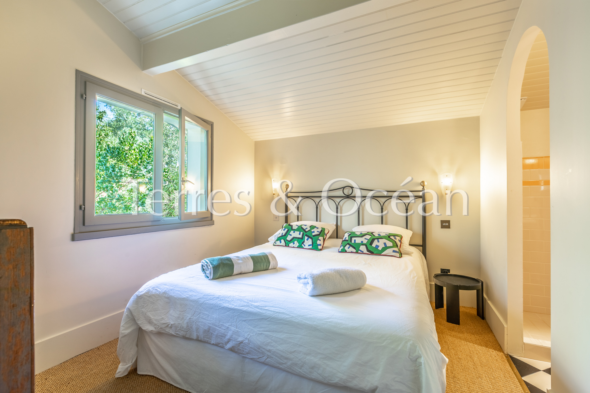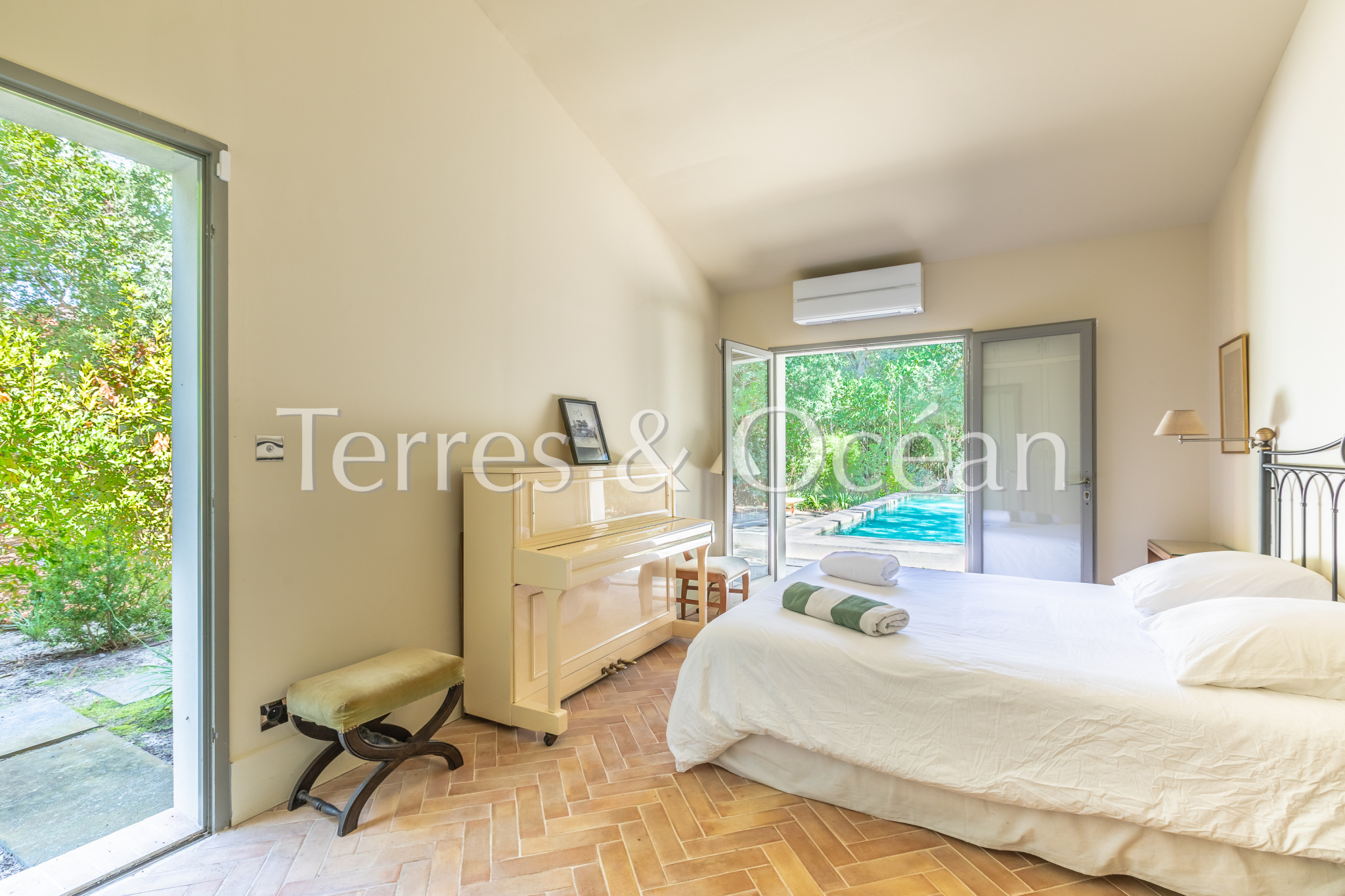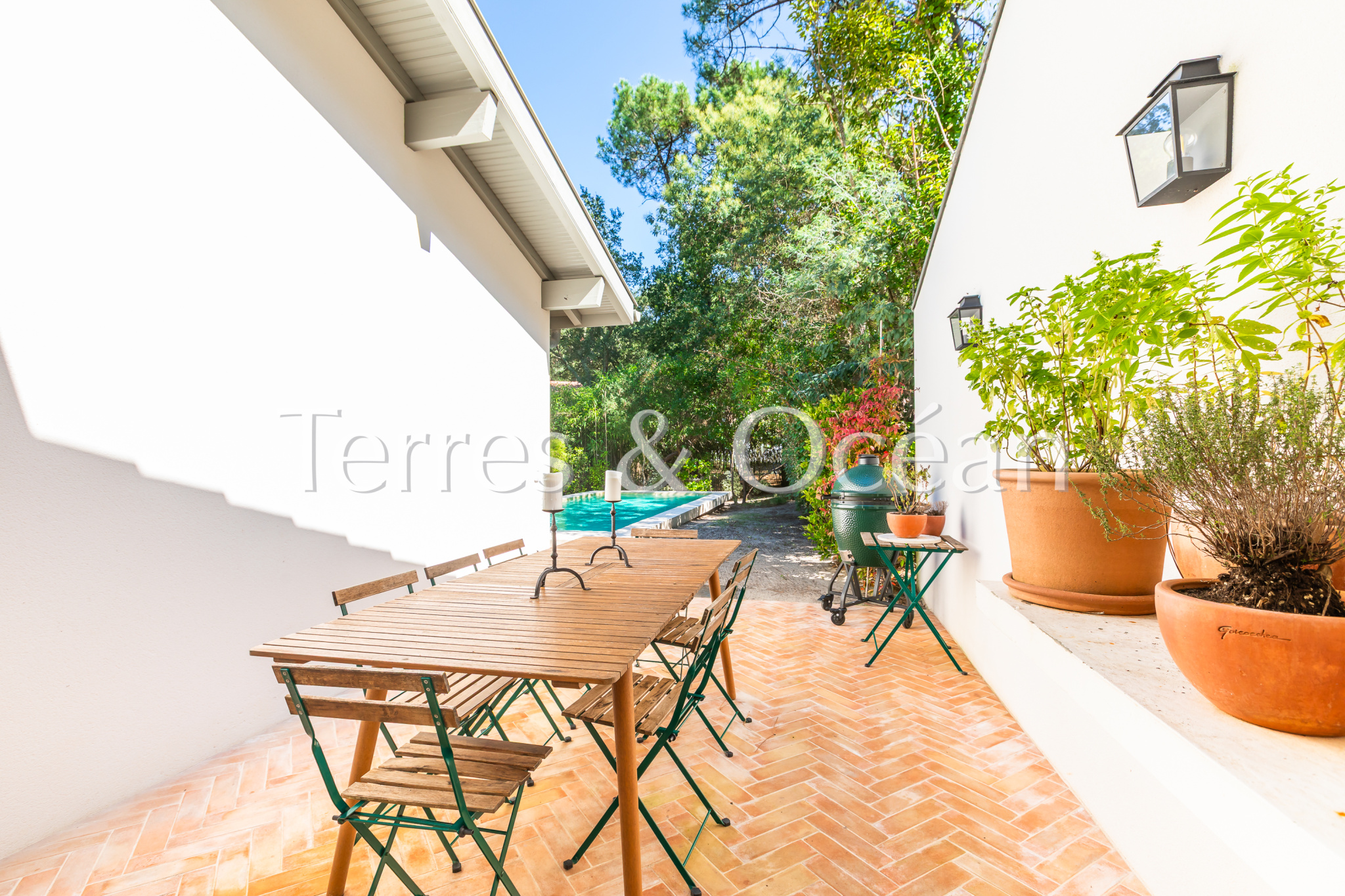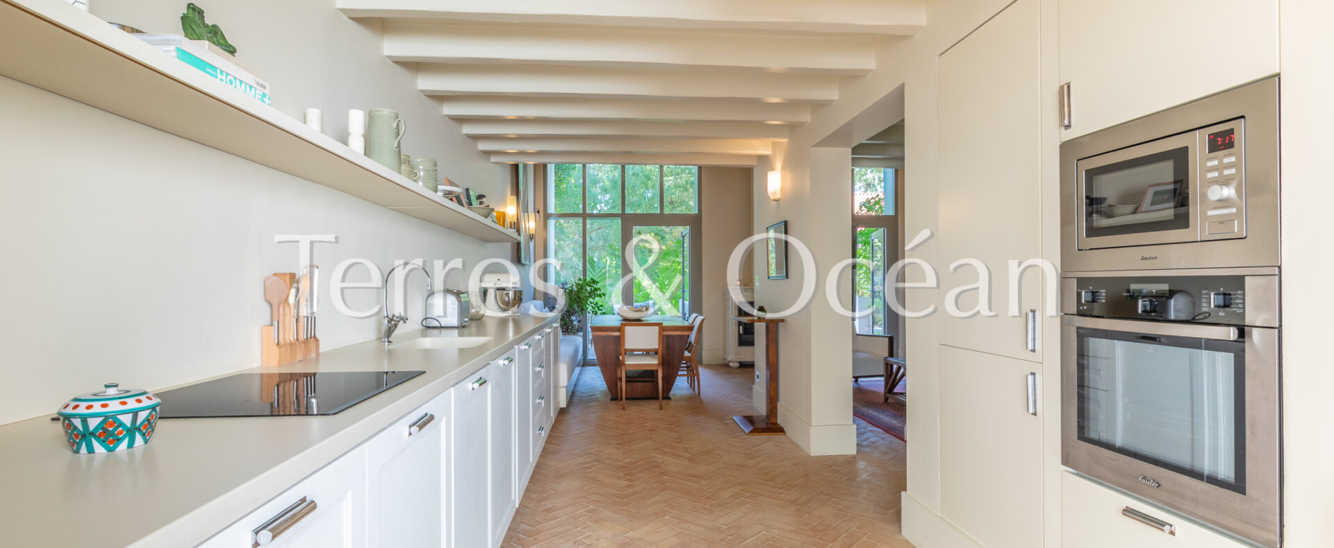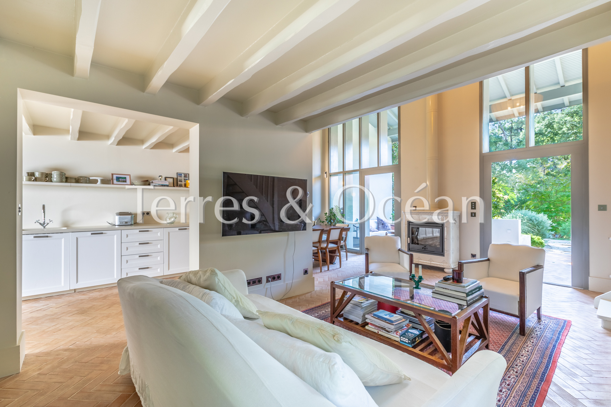 A proximité des plus belles plages et du lac d’Hossegor, au grand calme, sur un jardin intimiste et arboré. Charmante maison entièrement rénovée en 2023 d’environ 103m2 avec piscine chauffée. Elle est composée d’une sublime pièce de vie avec son séjour cathédrale entièrement vitré, salle à manger et cuisine US donnant sur deux spacieuses terrasses. La partie nuit est composée d’une suite parentale en rez de chaussée et de deux chambres à l’étage, avec leurs salles d’eau.
