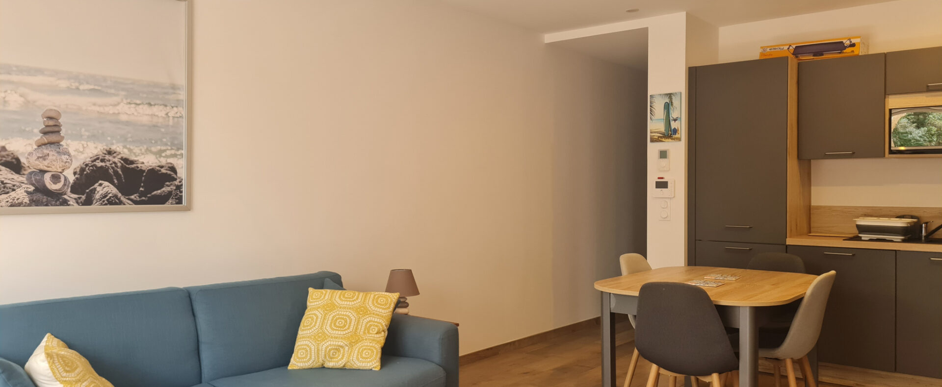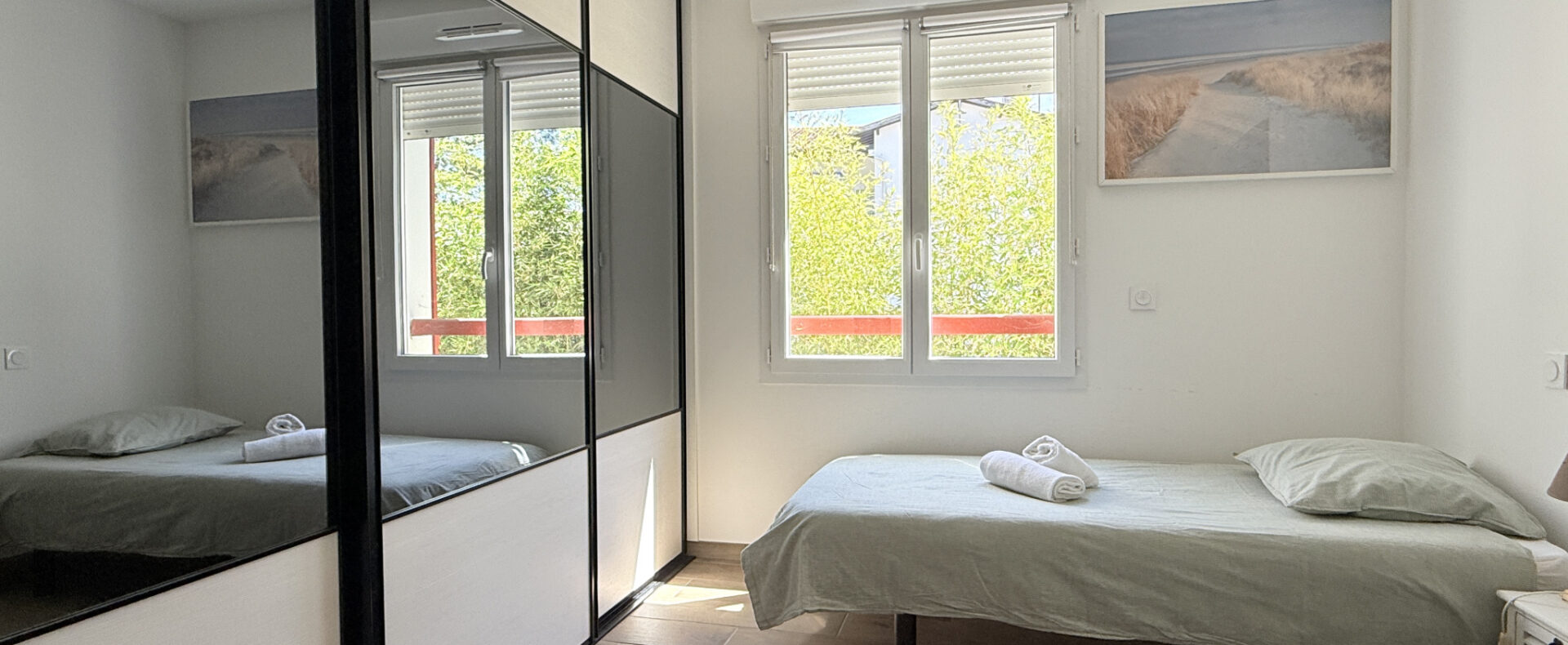 Idéalement situé entre le lac et l’océan, cet appartement T3 se situe au rez-de-chaussée d’une petite résidence de charme de 2020.