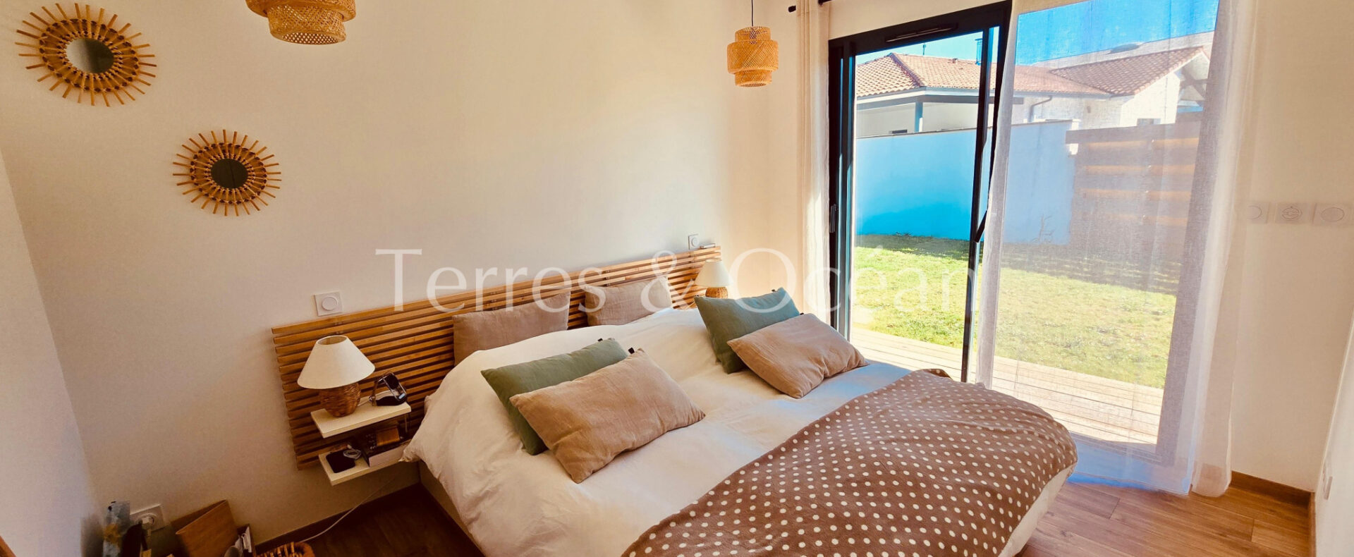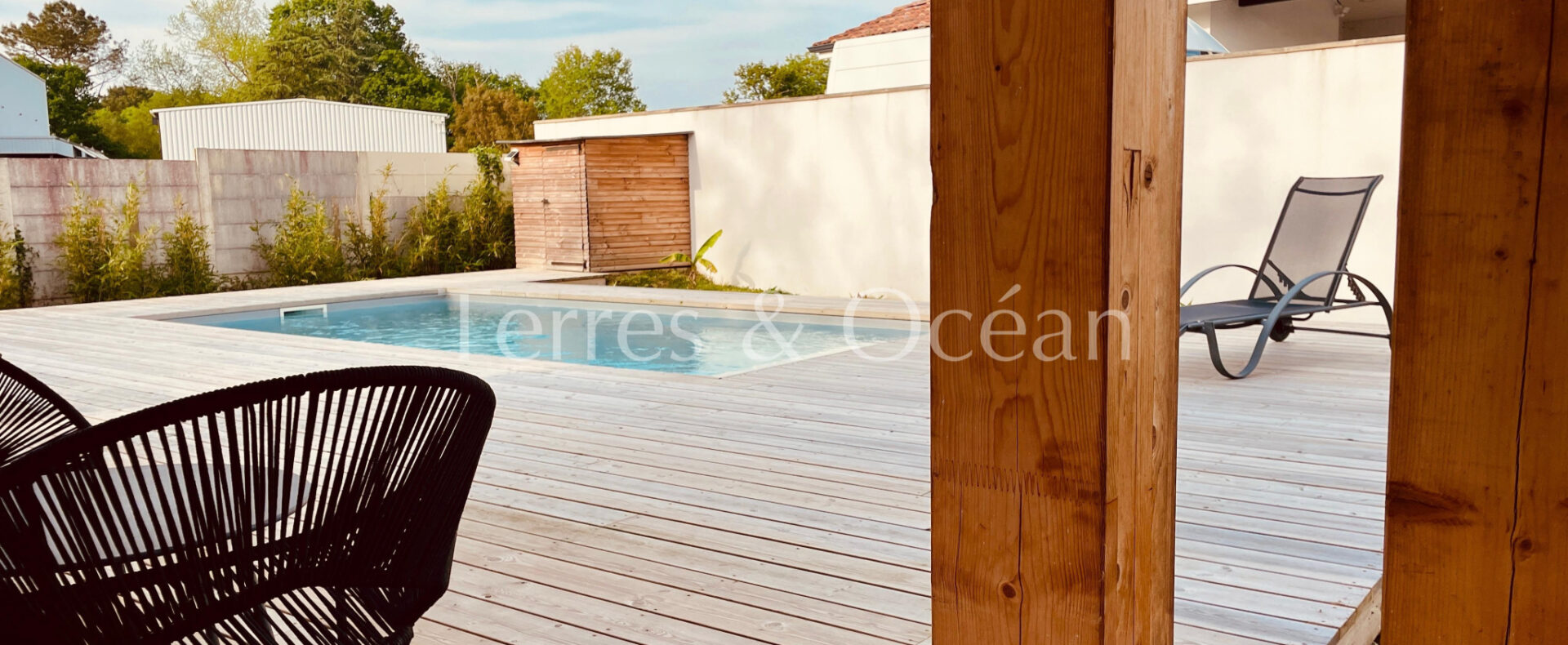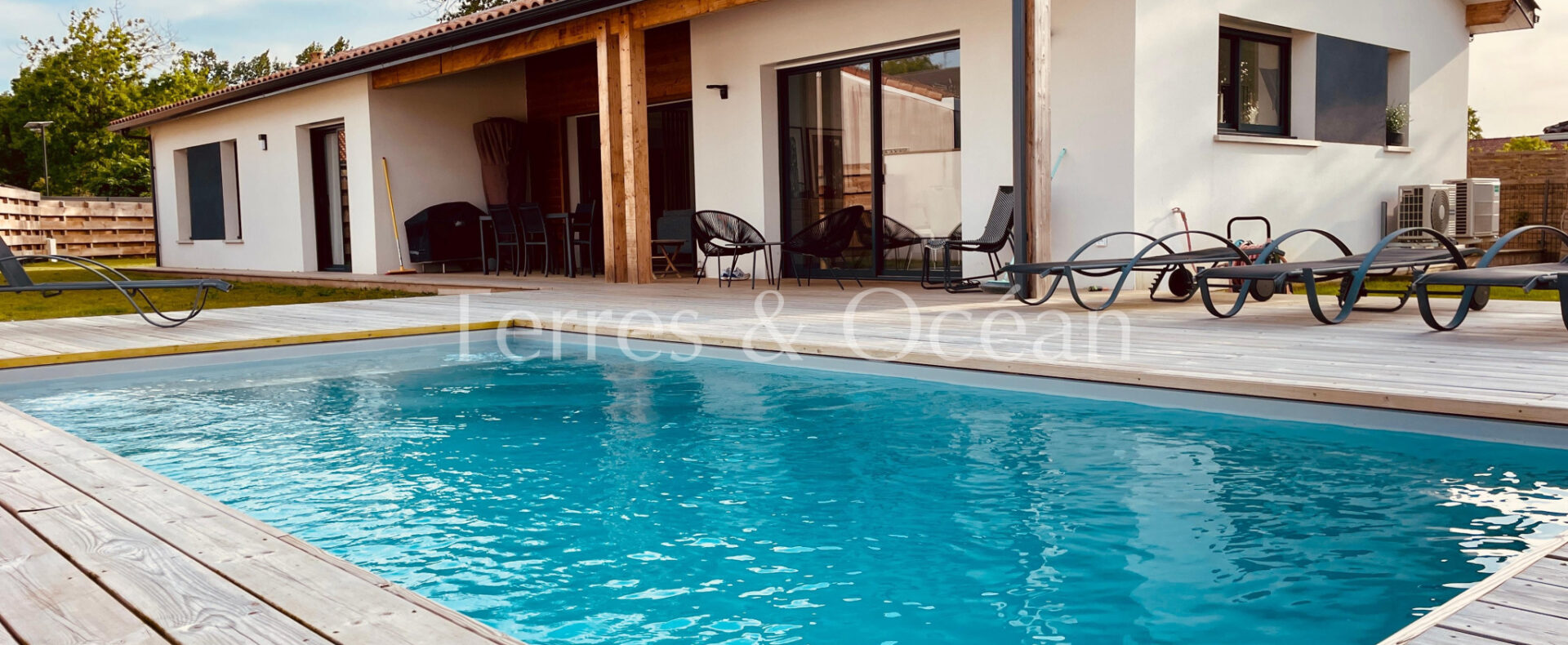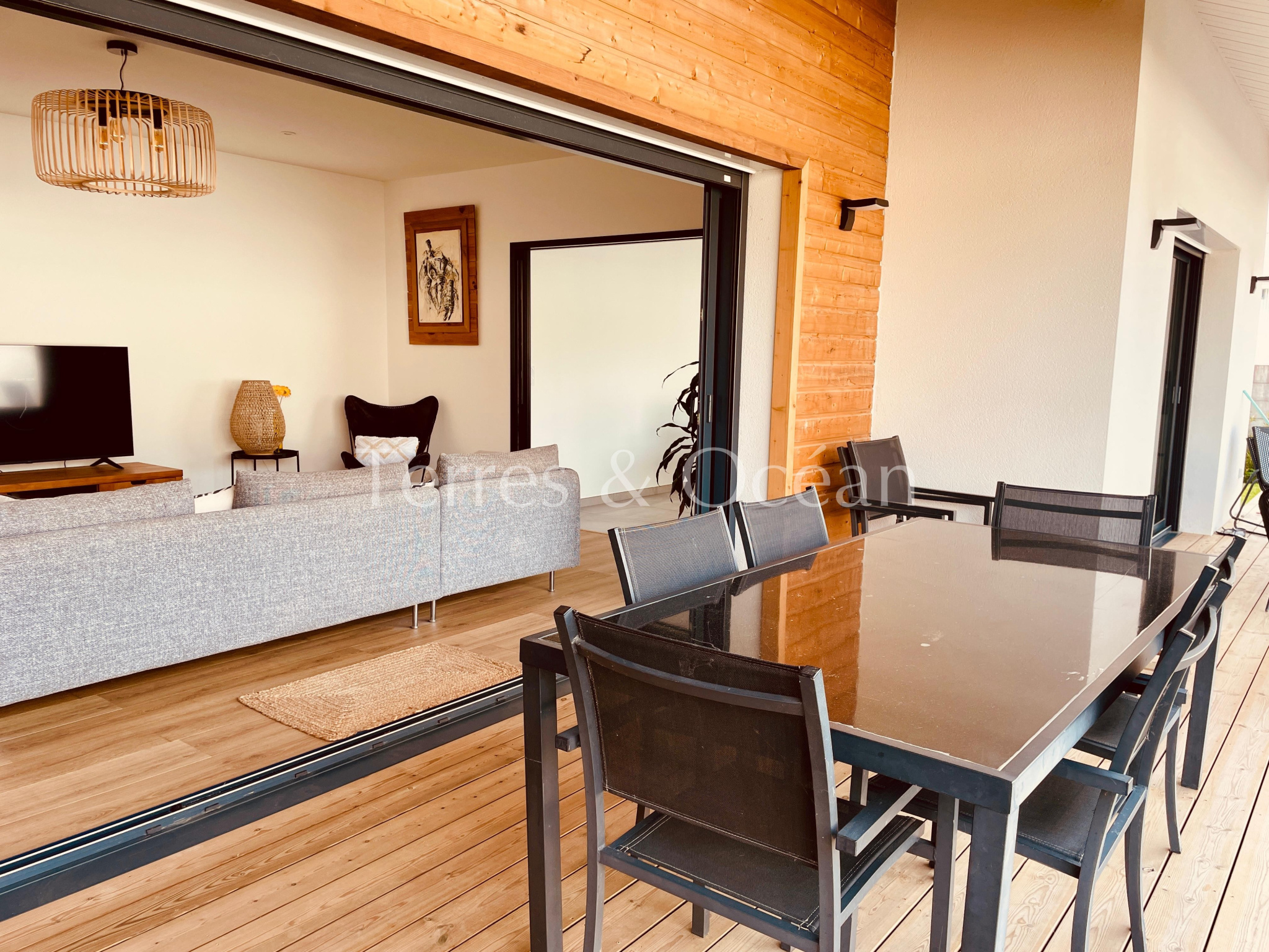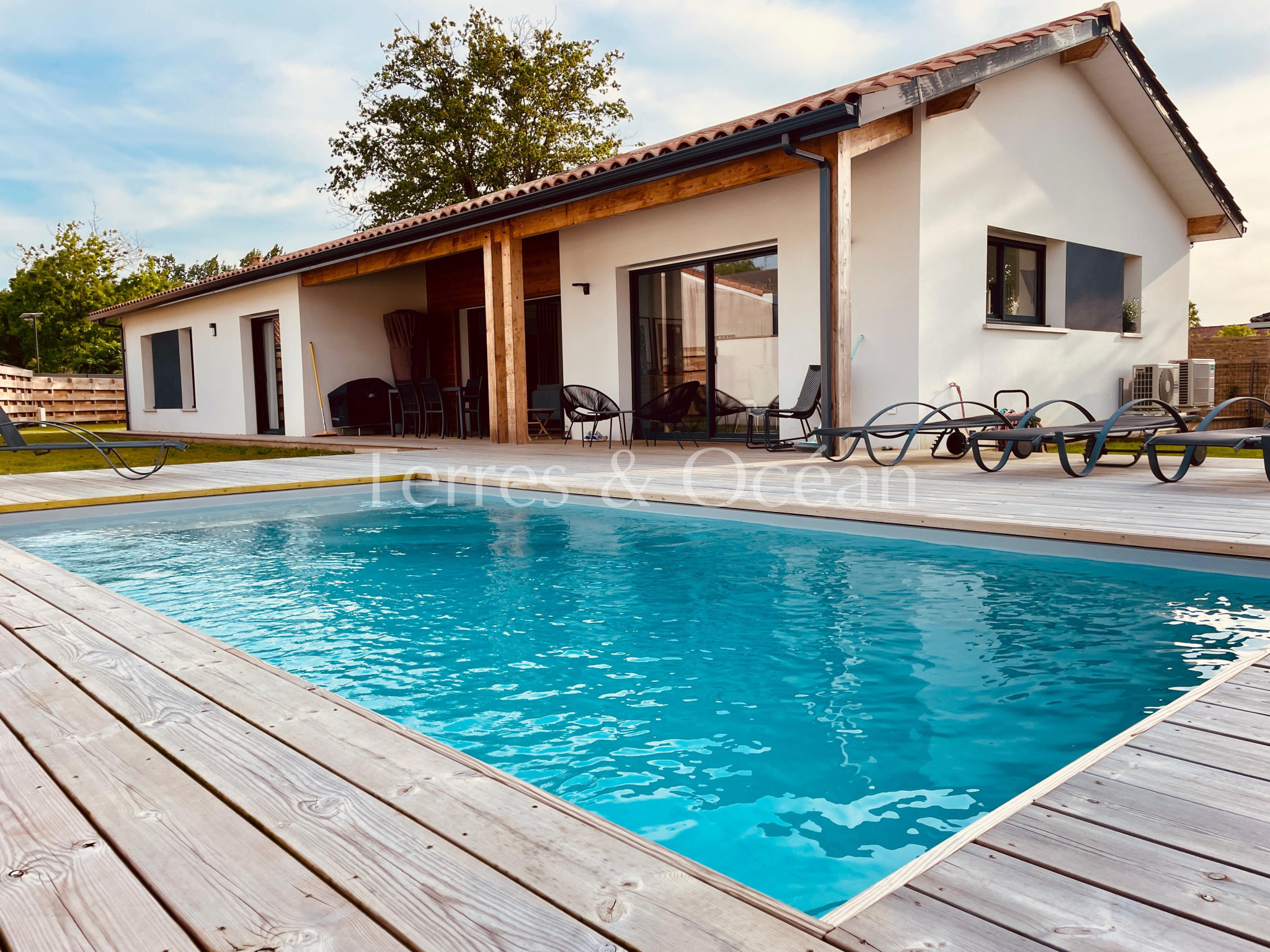 Construite en 2024 par Gondran Construction, la maison de 116m2 offre une belle luminosité et des prestations de qualité. Pièce de vie de 50 m2 avec cuisine aménagée et équipée, 3 chambres dont une suite parentale (dressing, salle d’eau, WC), une seconde salle d’eau et un WC indépendant. L’extérieur propose une grande terrasse de 100 m2 en partie couverte, une seconde terrasse plus intimiste, ainsi qu’une piscine (6×3 m). Terrain de 724m2 entièrement clôturé avec portail électrique. Cellier, garage, chauffage gainable, climatisation, stationnements. Une prestation complète qui est très appréciable.
