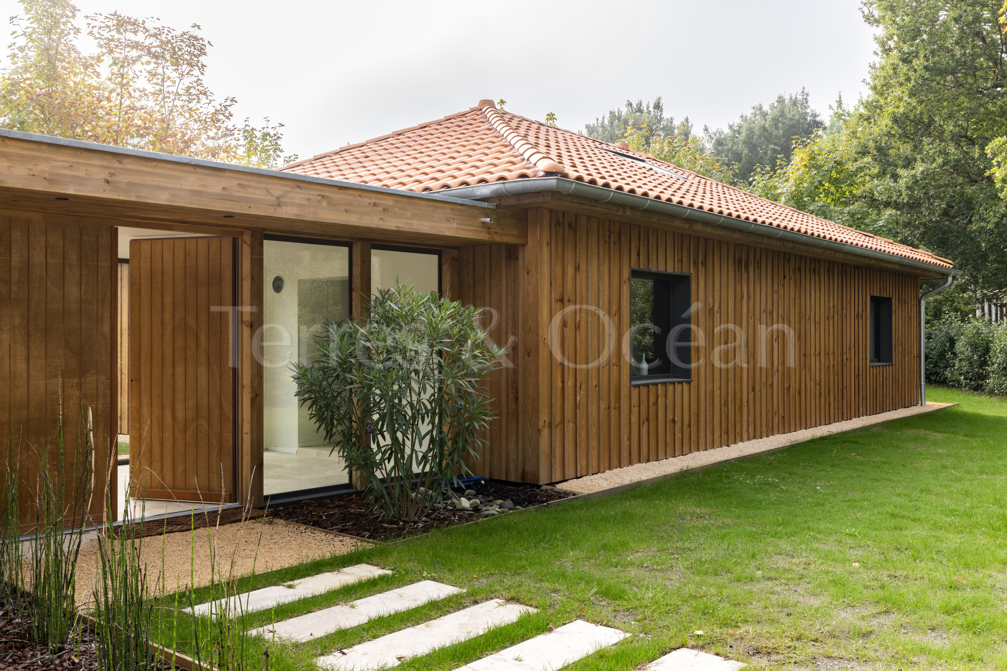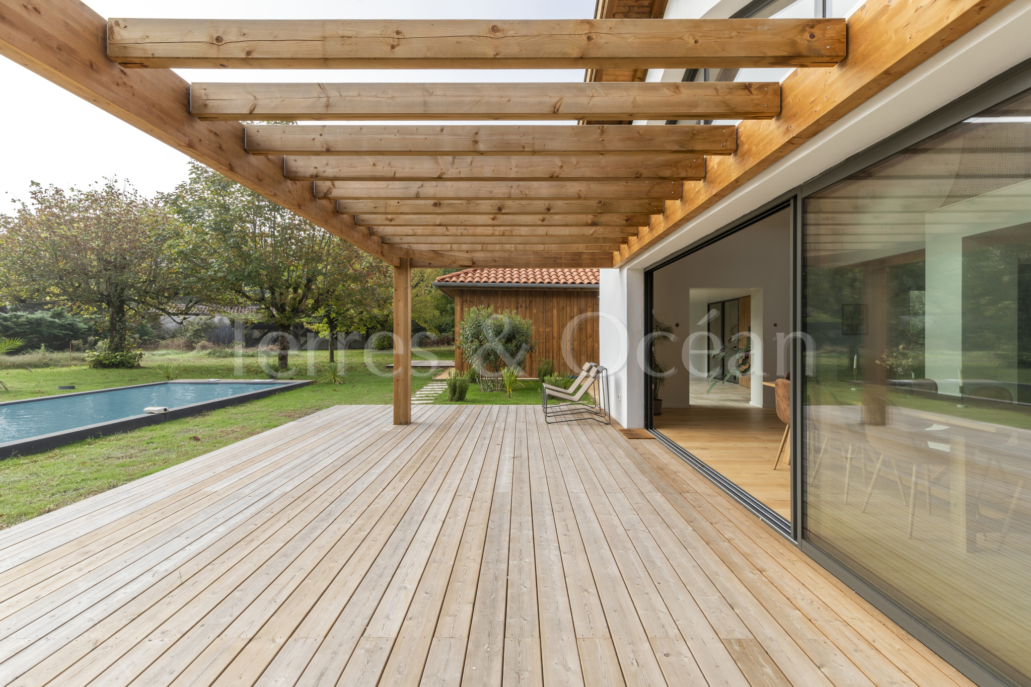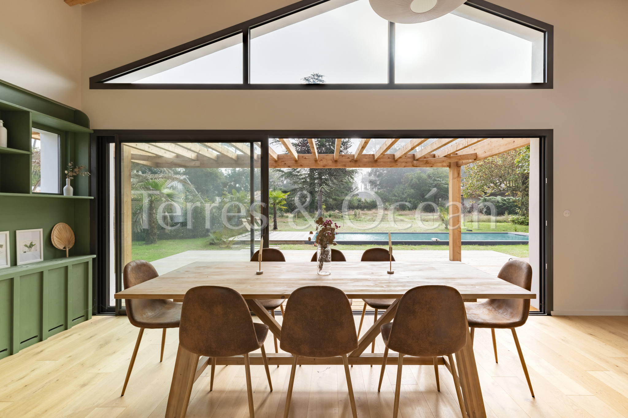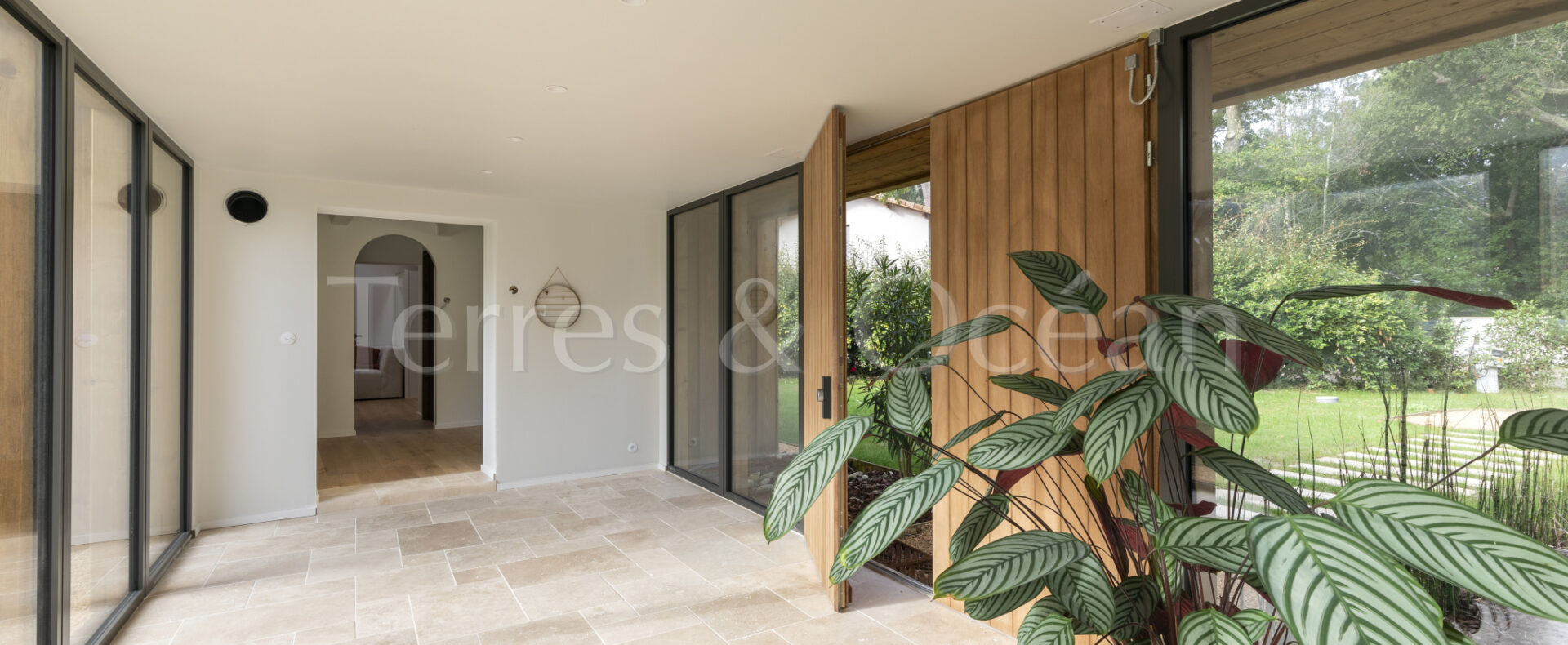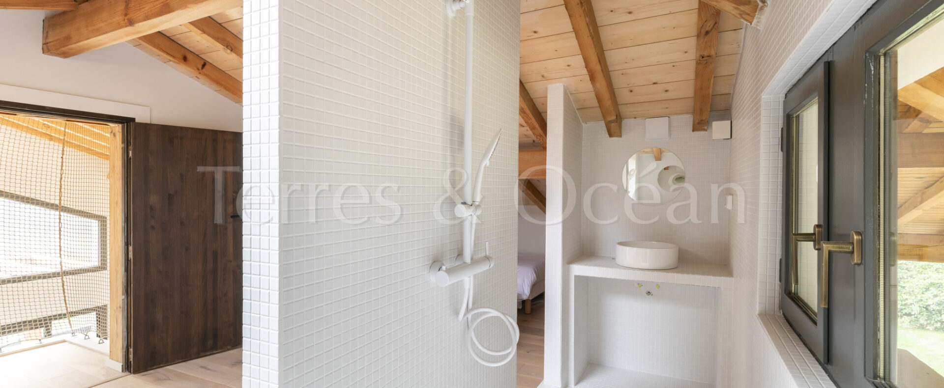 À 30 minutes d’Hossegor et proche des plages, dans un quartier calme et recherché, magnifique villa contemporaine rénovée totalement d’environ 170m2. Un mélange du charme de l’authentique et de la modernité recherchée aujourd’hui. La villa, vendue entièrement équipée, est composée d’une superbe entrée vitrée, d’une grande pièce de vie avec cuisine ouverte, d’un salon, d’un espace bureau, de trois chambres avec chacune sa salle de douche, d’une suite parentale (chambre, espace dressing et salle de douche) et de trois wc. La vaste terrasse donne sur une belle piscine chauffée. Jardin paysagé d’environ 2500 m2 avec arrosage automatique. Travaux sous garantie et assurance dommages ouvrages. Visite virtuelle sur demande. Les informations sur les risques auxquels ce bien est exposé sont disponibles sur le site Géorisques : www.georisques.gouv.fr Proposé à la vente par l’agence TERRES & OCEAN immobilier – Agent commercial Alexandra Baudoin Desprez (RSAC 853744217 Dax) Tél : 07.81.75.97.44